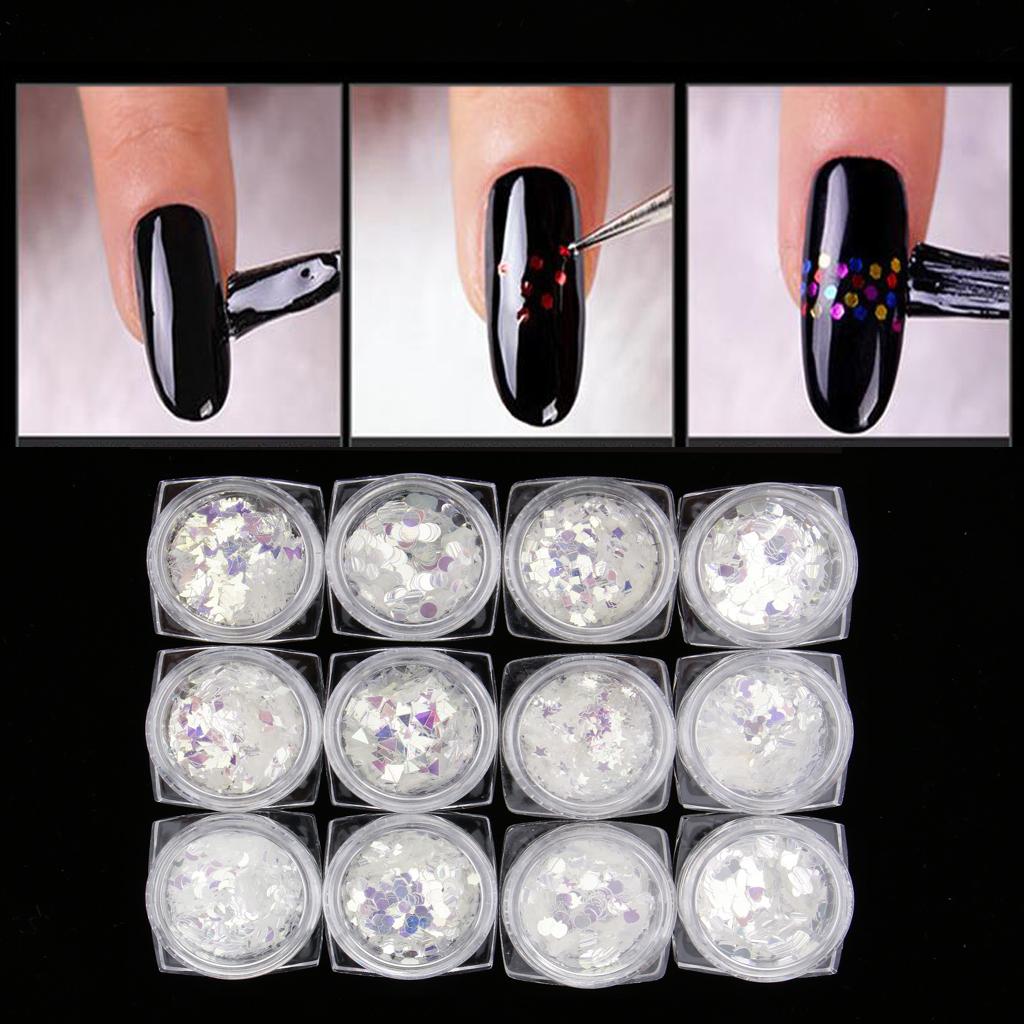 12 Styles Nail Art Decoration Sticker Glitter Sequins Design 3D DIY Charms Shiny Decals