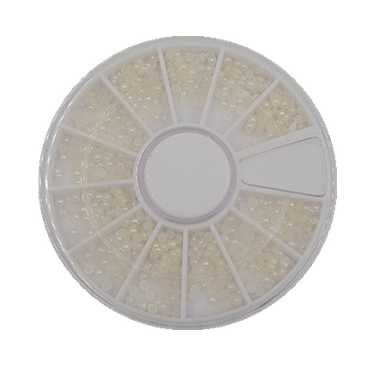 1200pcs Wheel Nail Art Tip Half Pearls 3D Rhinestone Decor Manicure Slice
