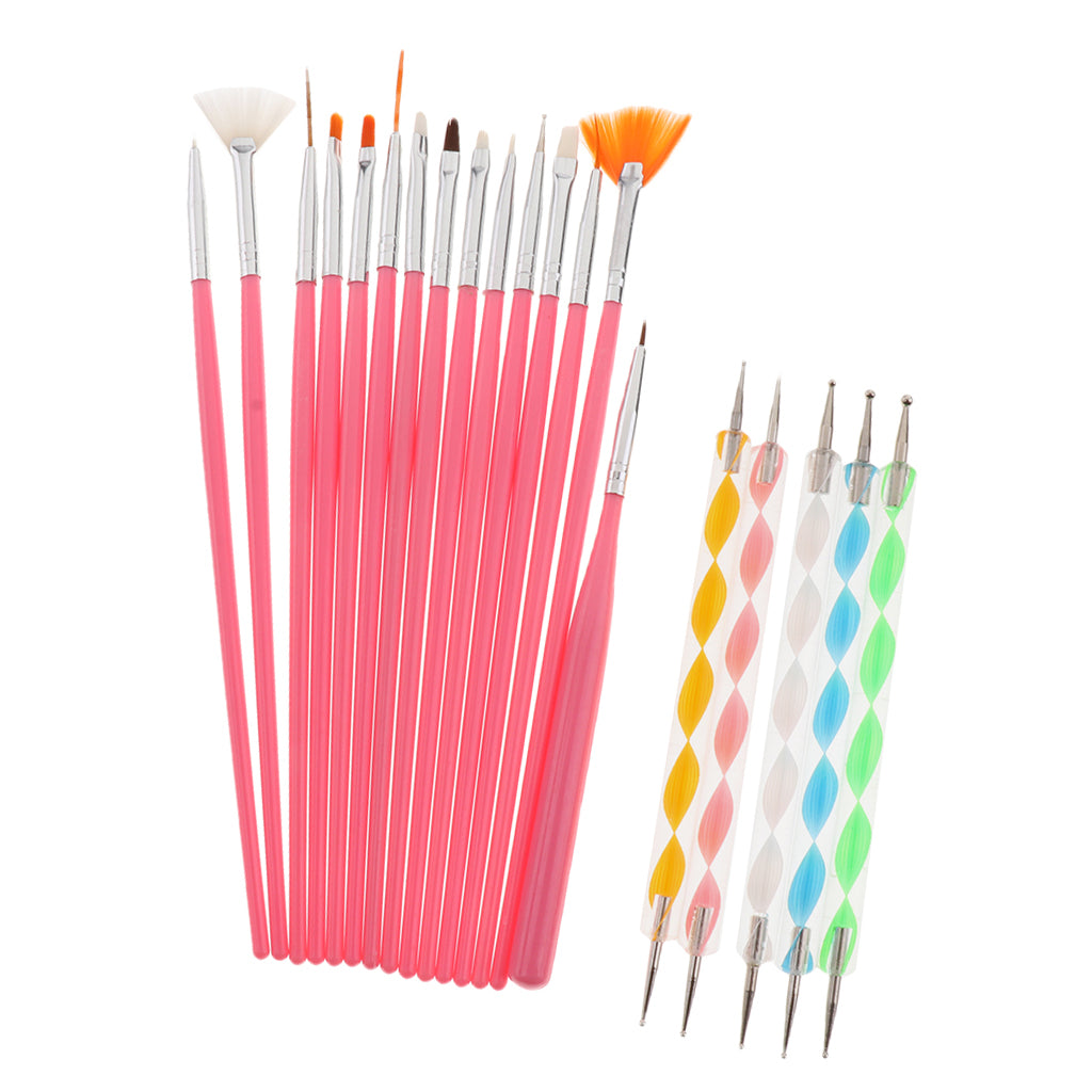 • Quantity: 5pcs Nail Art 2-Way Drawing Dotting Painting Pen + 15 piece-set Nail Art Design Brush
