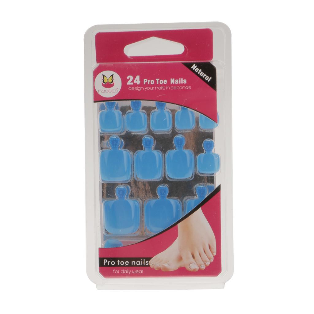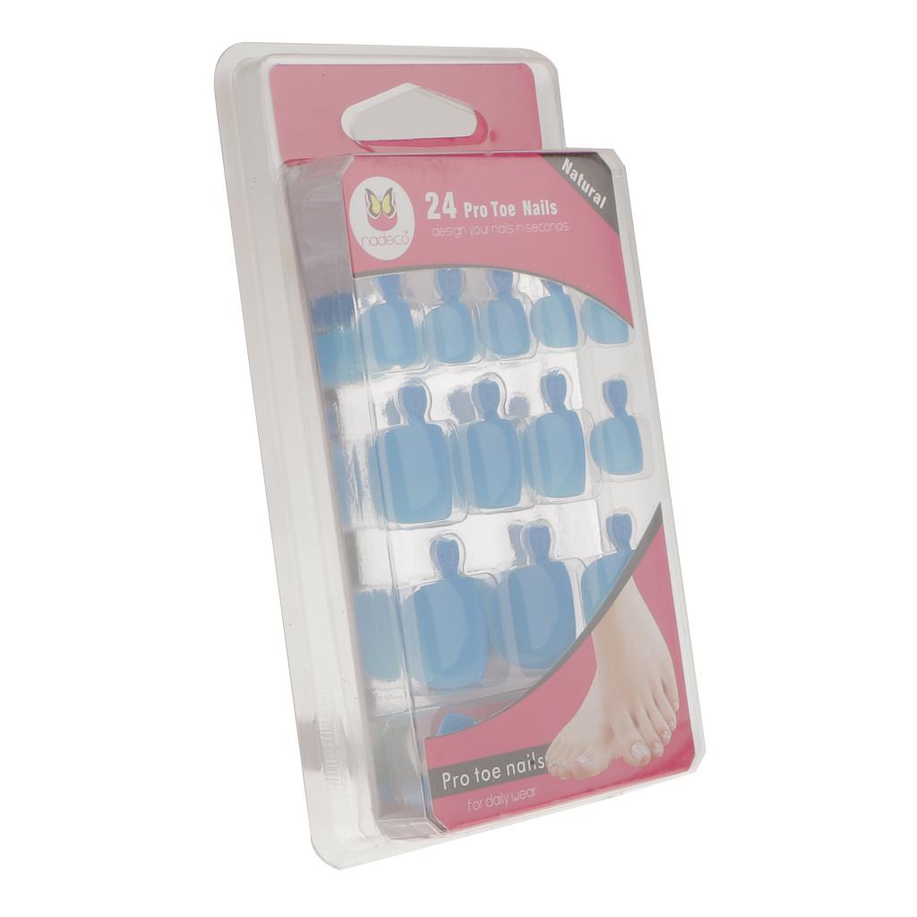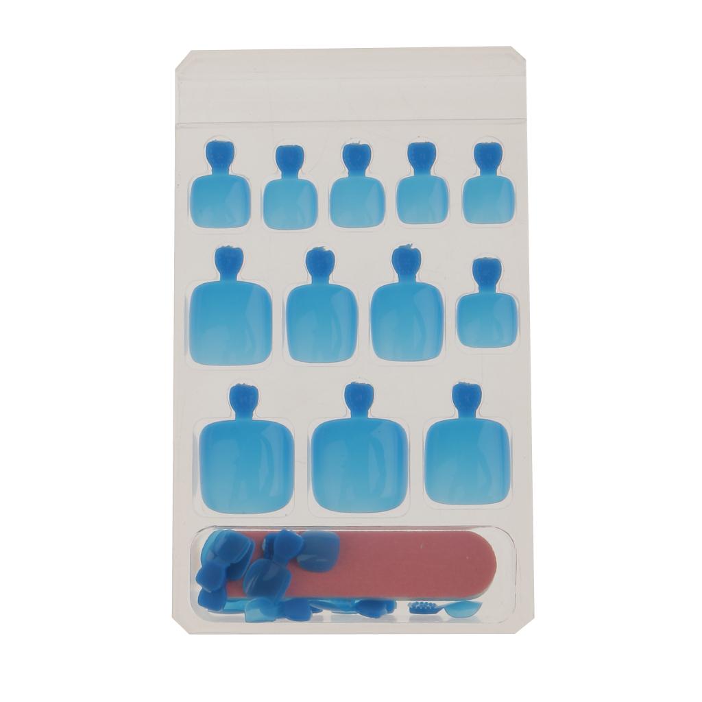 24pcs Pure Toe Nails Full Cover Pedicure False Nail Art Tips with File Blue