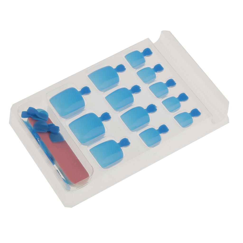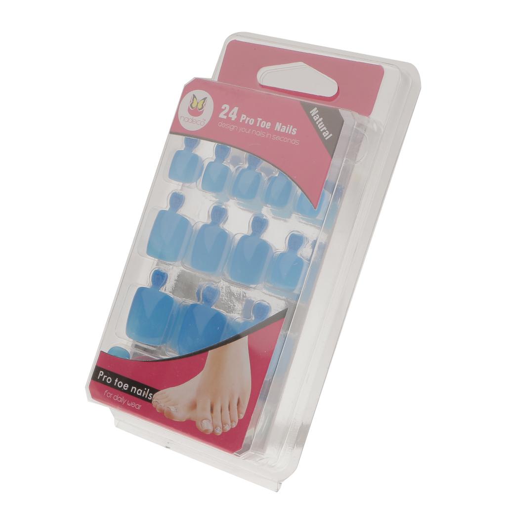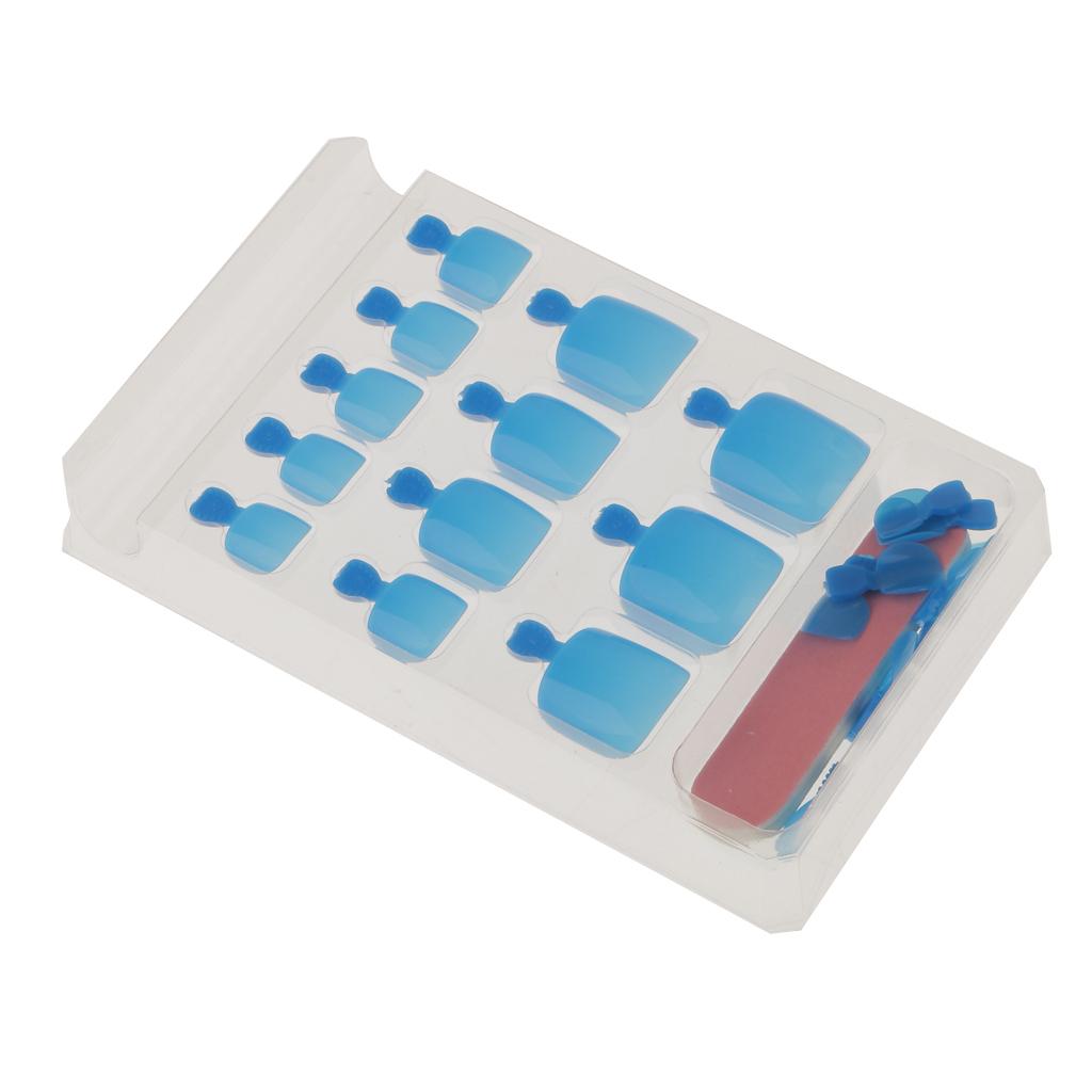 24pcs Pure Toe Nails Full Cover Pedicure False Nail Art Tips with File Blue