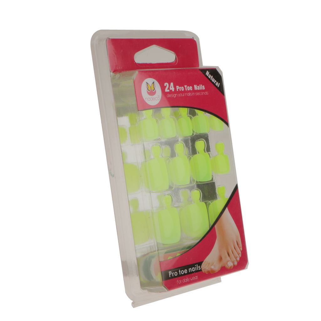 24pcs Pure Toe Nails Full Cover Pedicure False Nail Art Tips with File Green