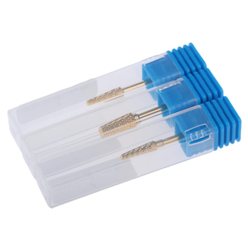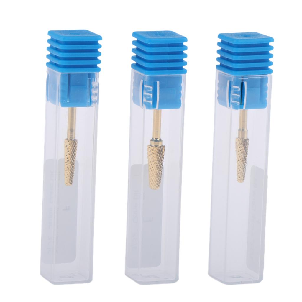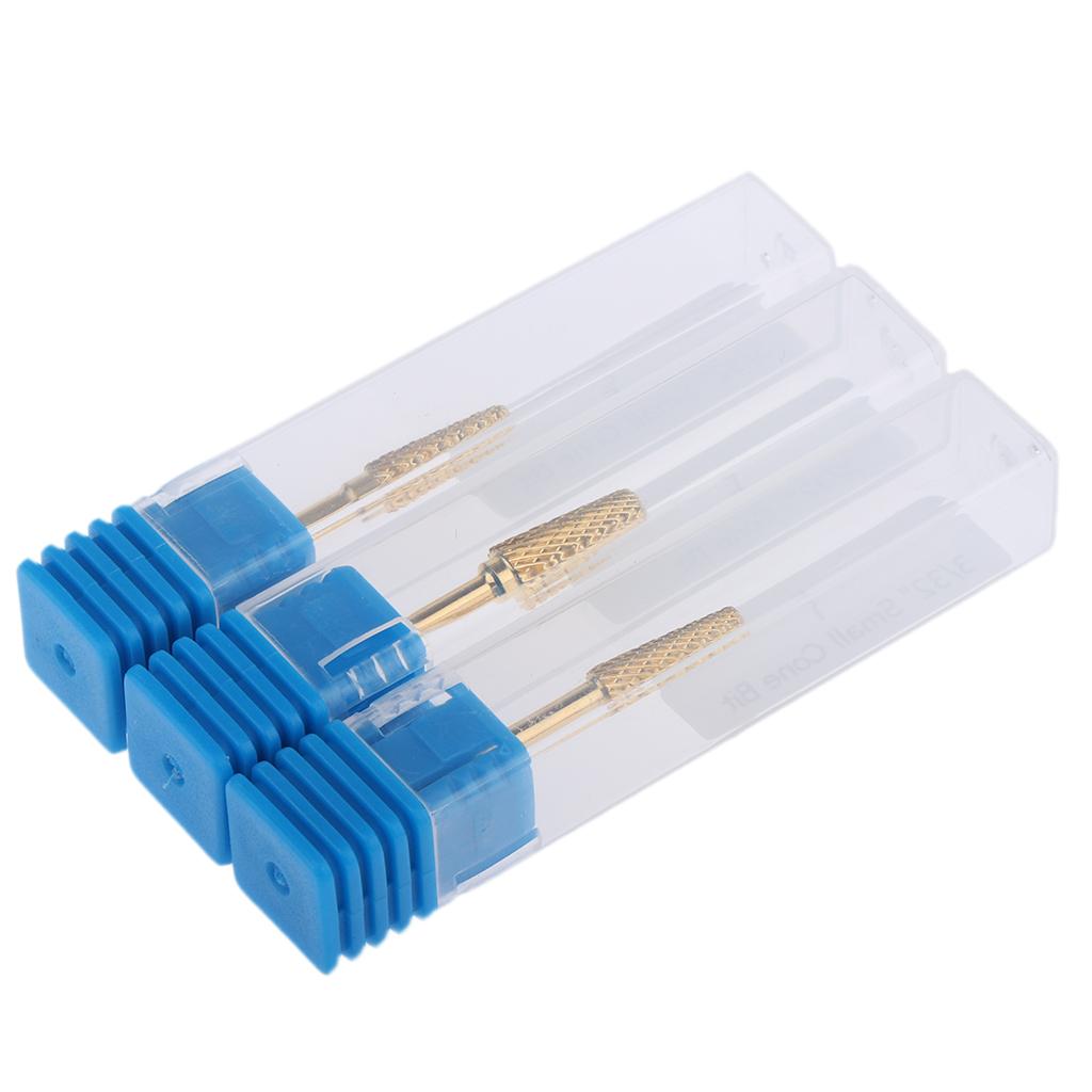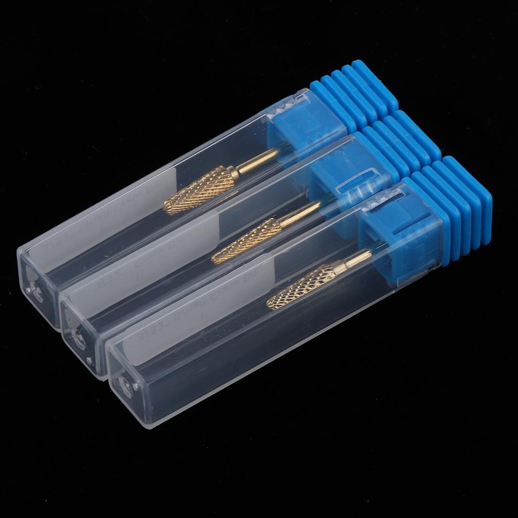 3pcs Gold Alloy Small Barrel Head Nail Drill Bit Set Nail Tips Grinding Head