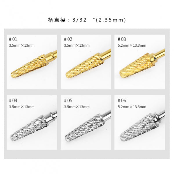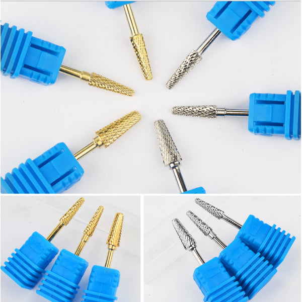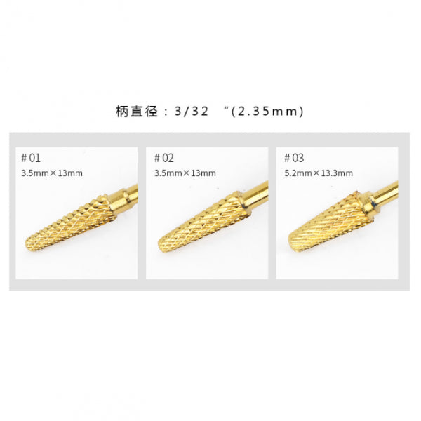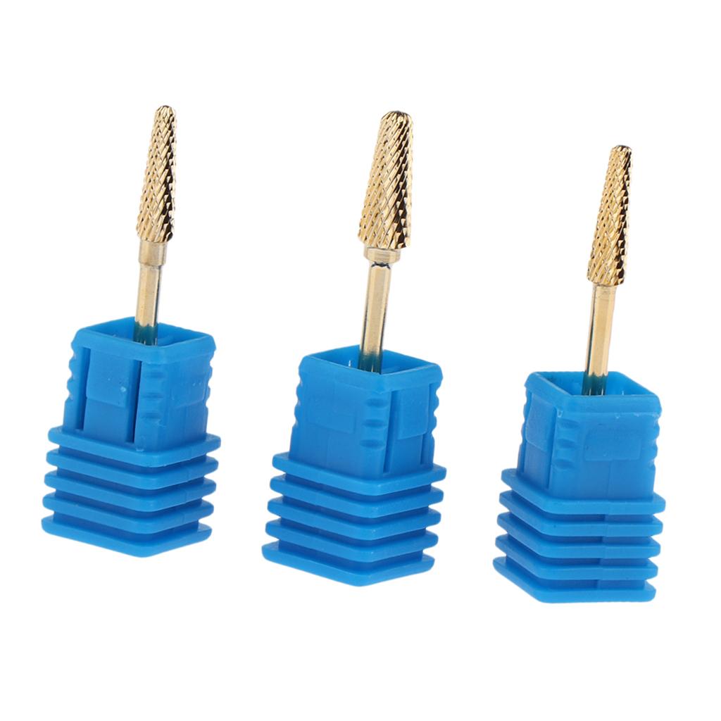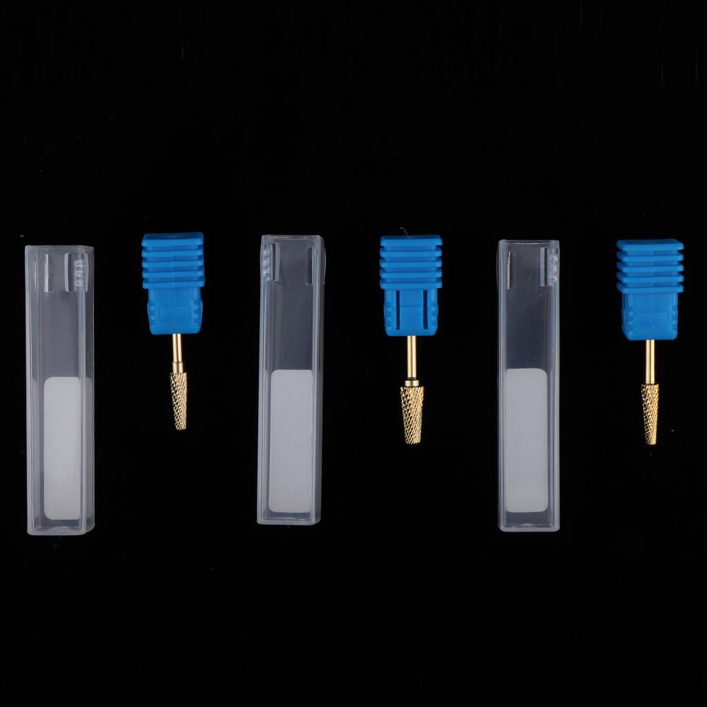 3pcs Gold Alloy Small Barrel Head Nail Drill Bit Set Nail Tips Grinding Head