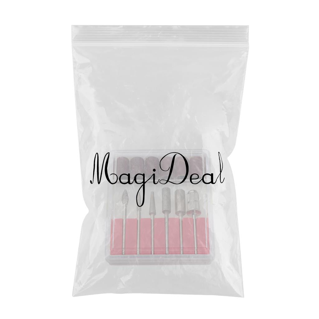 Set of 6 different Electric Nail Files Drill Bits,6 Sanding Bands in different grits and a plastic compact case for storage.