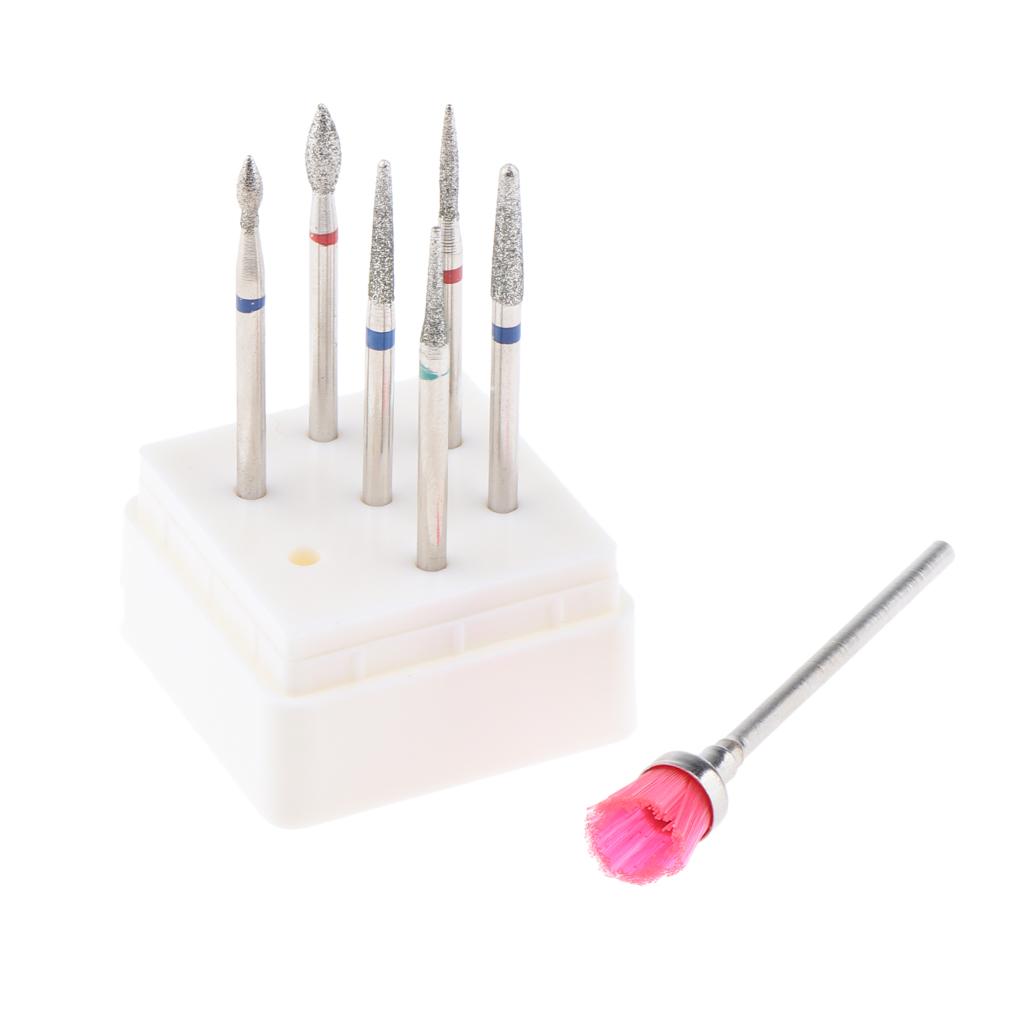 7 in 1 manicure tool,6 pieces Nail Drill Bits with 1 piece Nail Art Dust Brush;Helping polish and reshape your natural and acrylic nails.