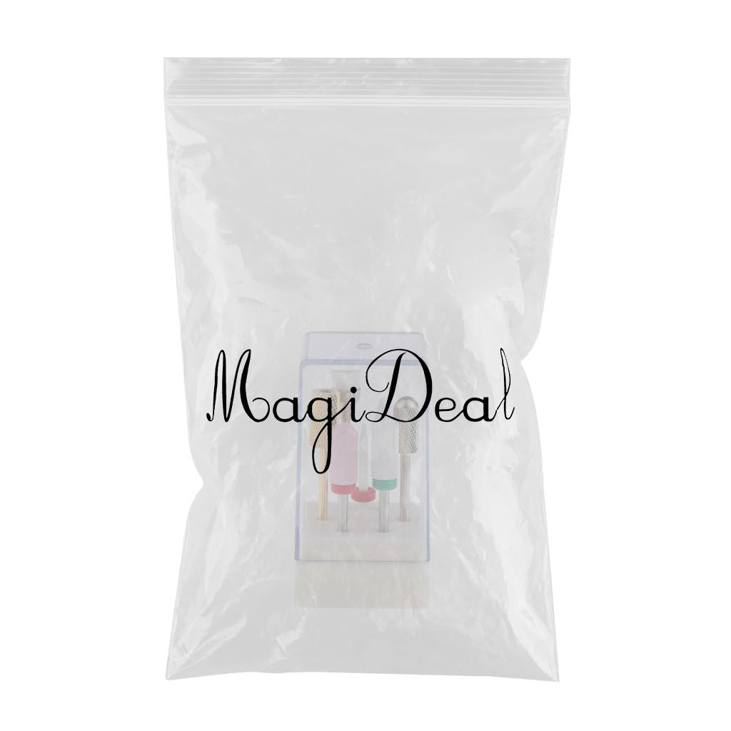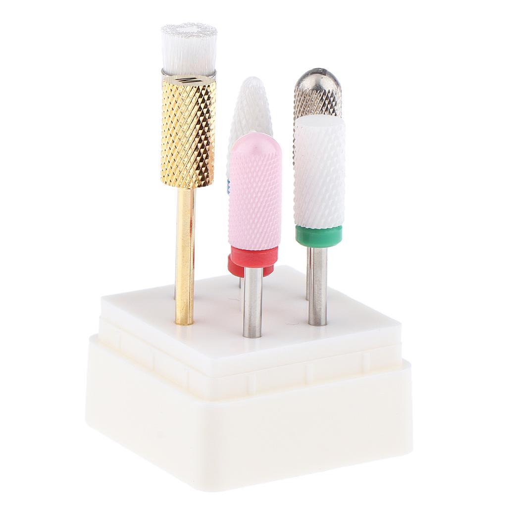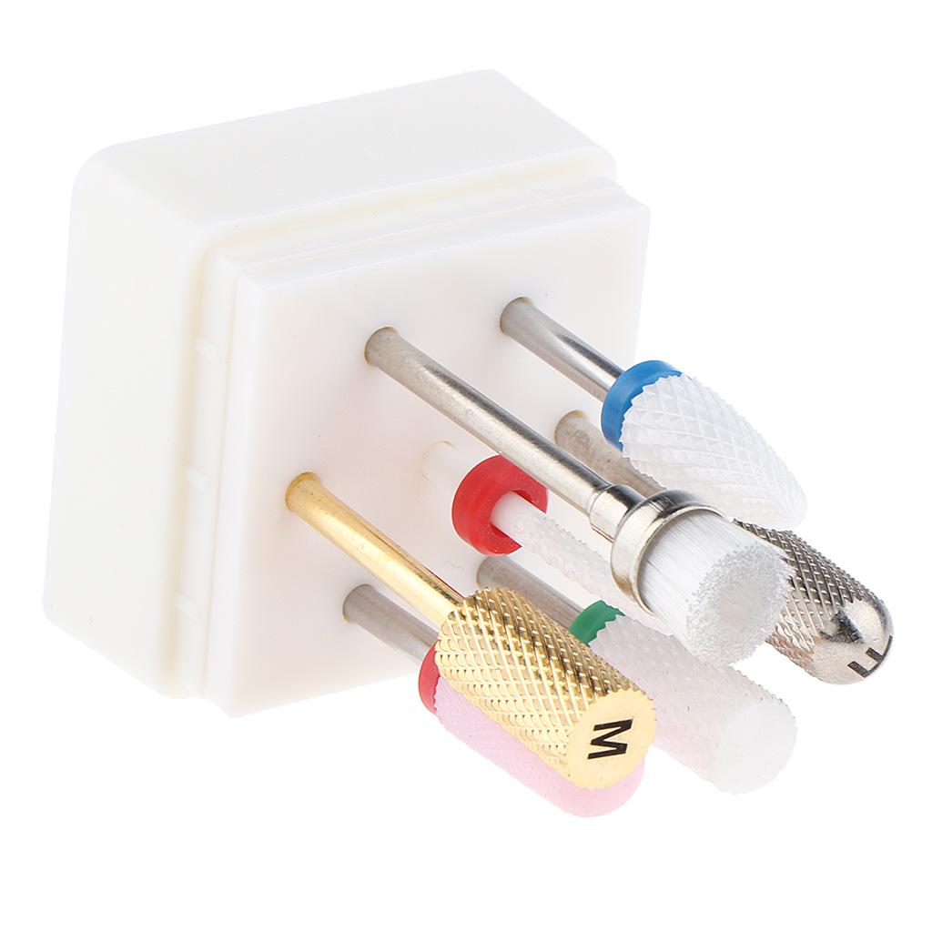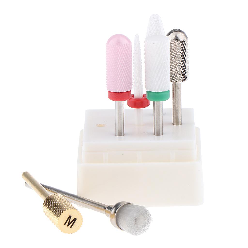 Set of 6 different nail drill bits and 1 cleasing brush, perfect 7-in-1 manicure tools kit.