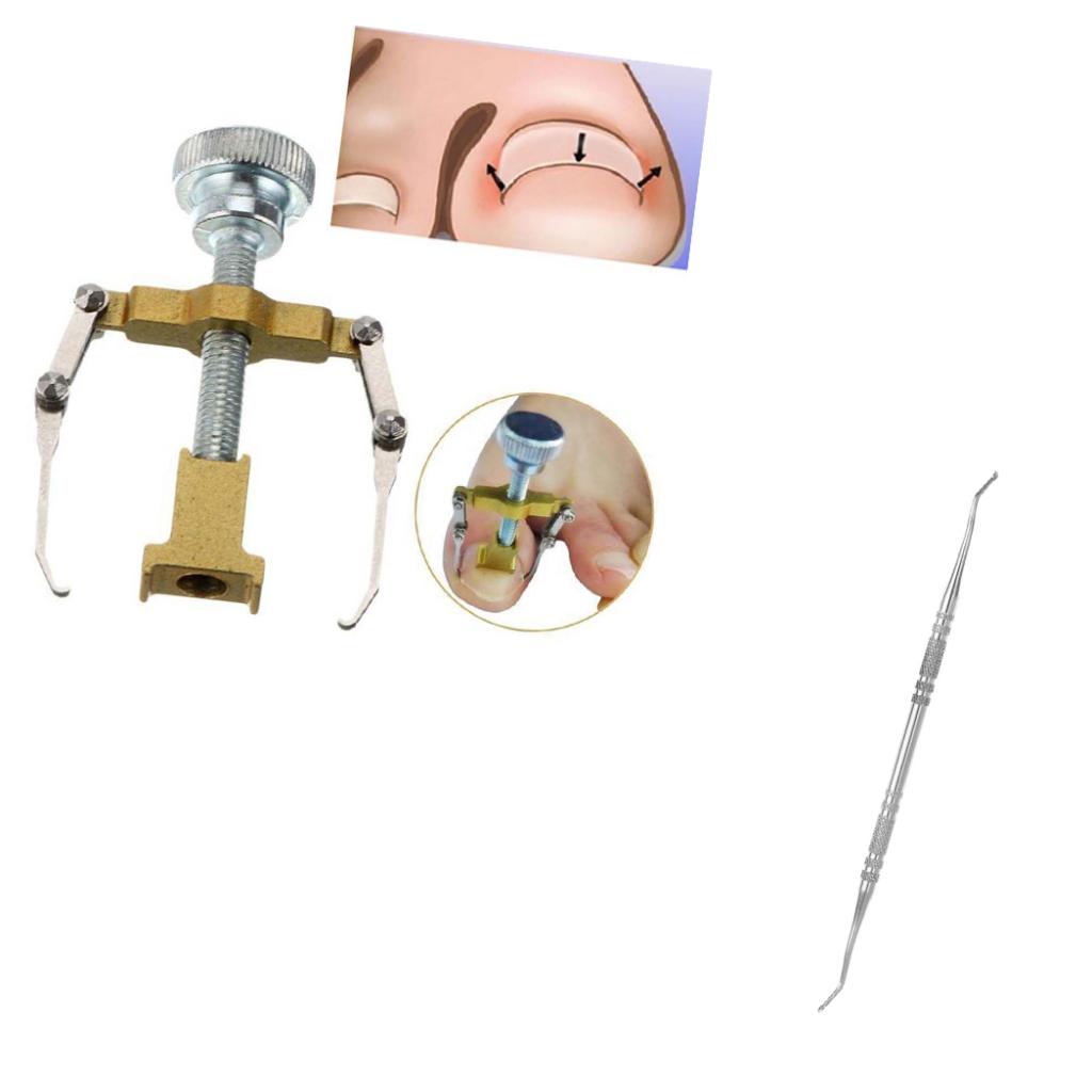 Hook both sides of the ingrown toenail with the two hooks on the equipment.
