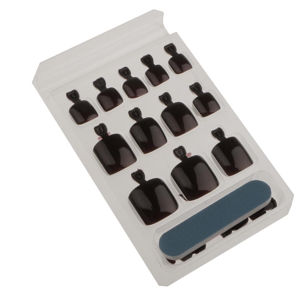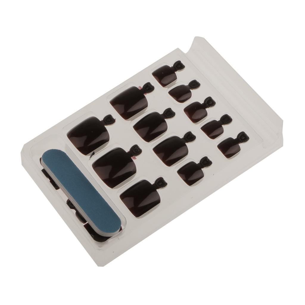 Men Women Glitter Shiny Toe Nail Tips With Nail File Pedicure Manicure Tool Brown