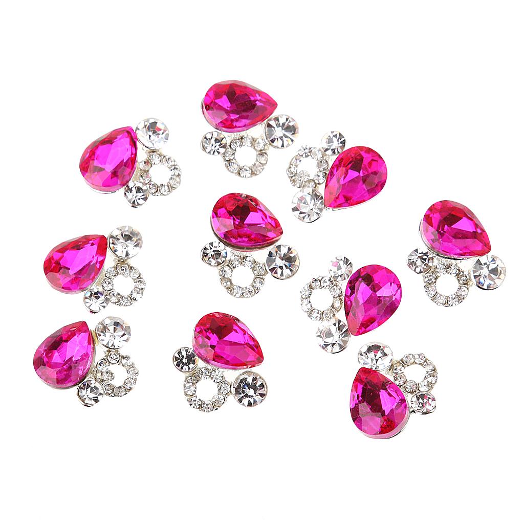Nail Art 10 Pcs 3D Bling Rhinestone Charm Decorations Silver Rose Waterdrop