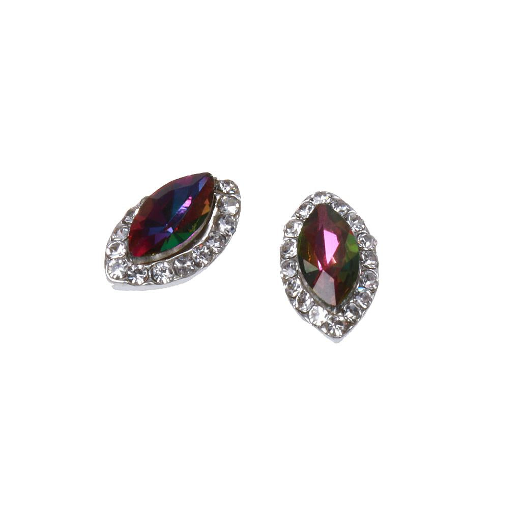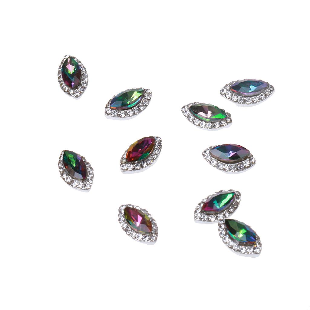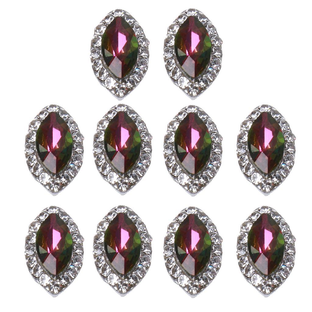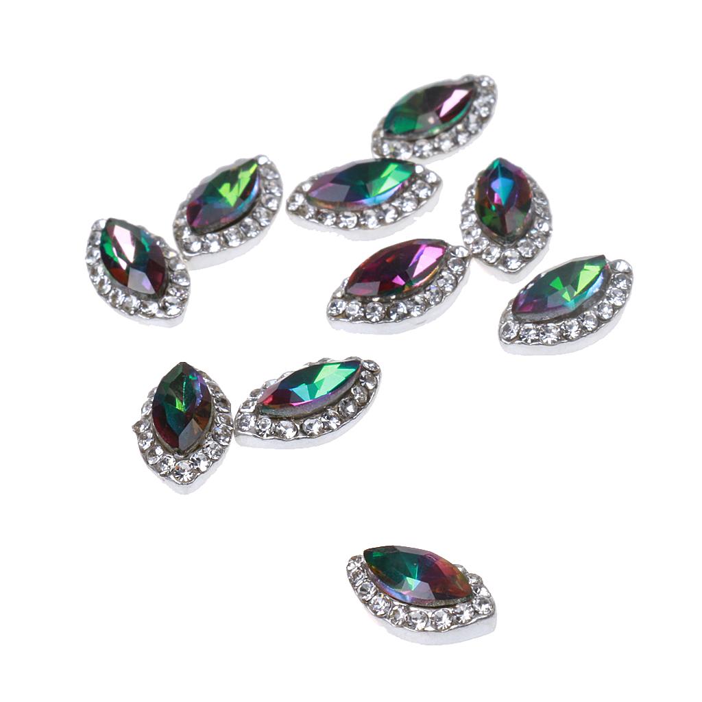 Nail Art 10 Pcs 3D Bling Rhinestone Charm Glitter Decorations Silver Green-2