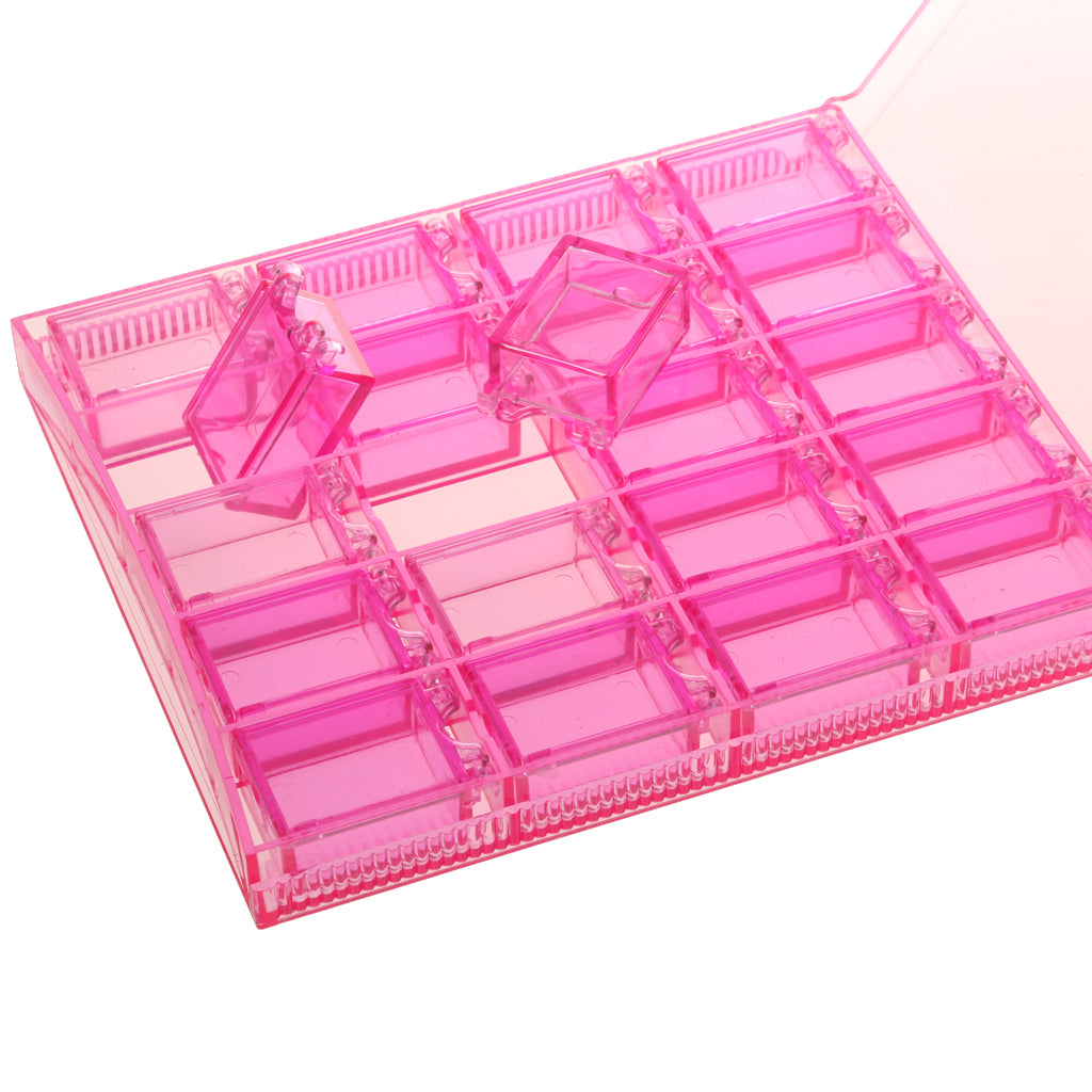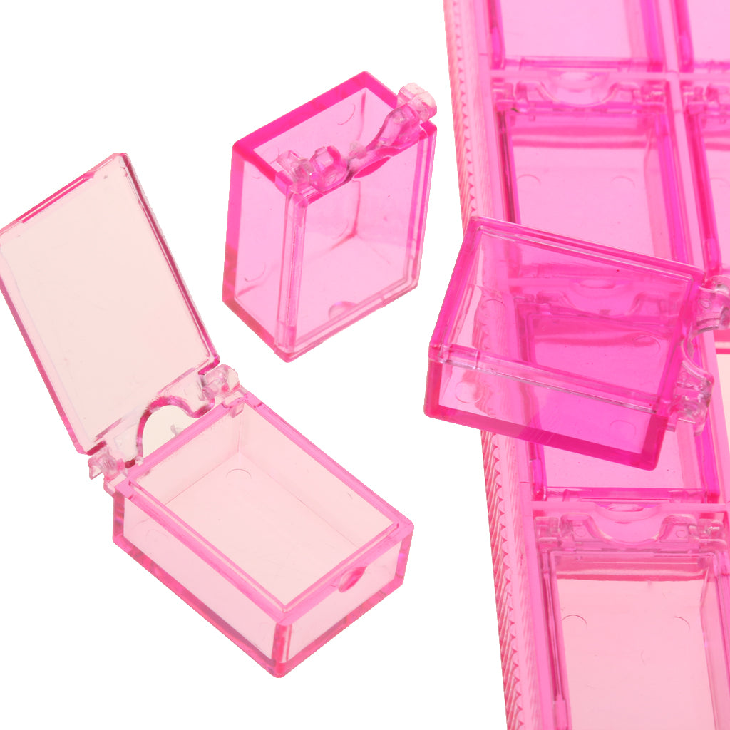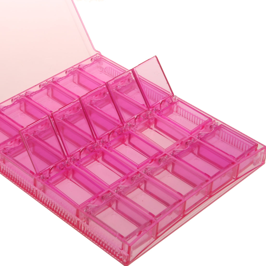 Pink Empty Plastic Nail Art Case Glitter Powder Display Box Container Case