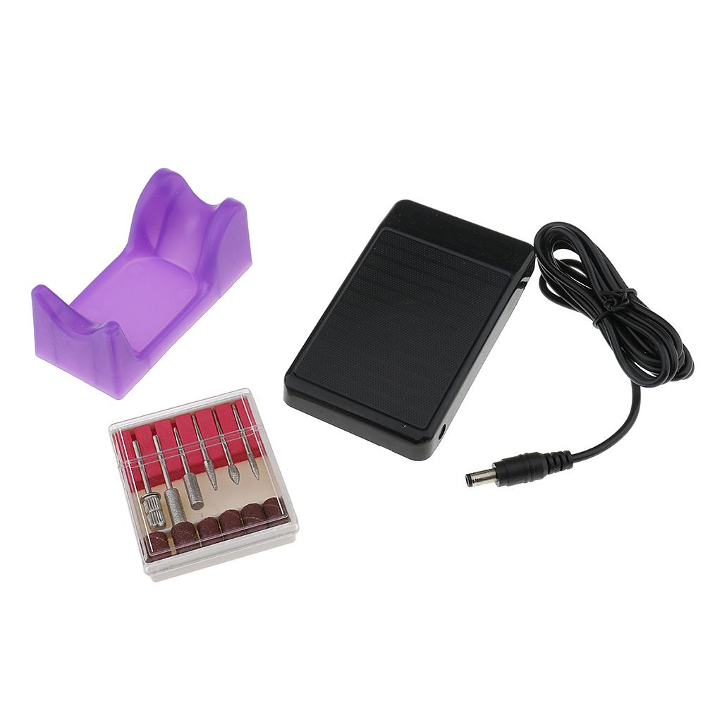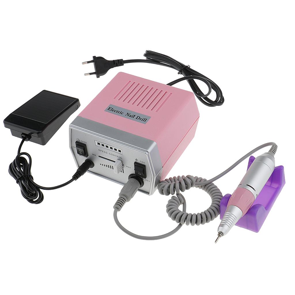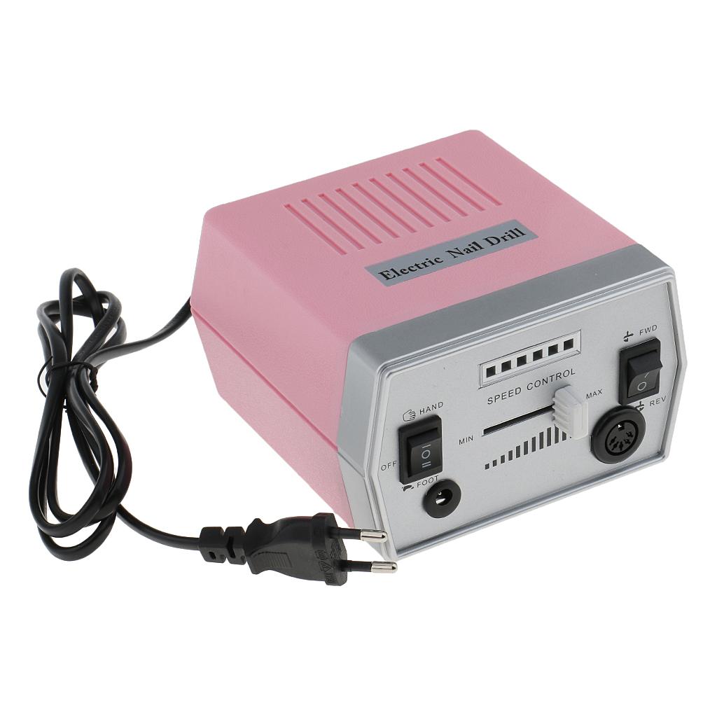 Come with a pedal, there are 2 buttons for the direction of the rotation and choice of either hand or foot pedal use.