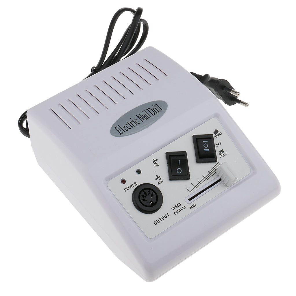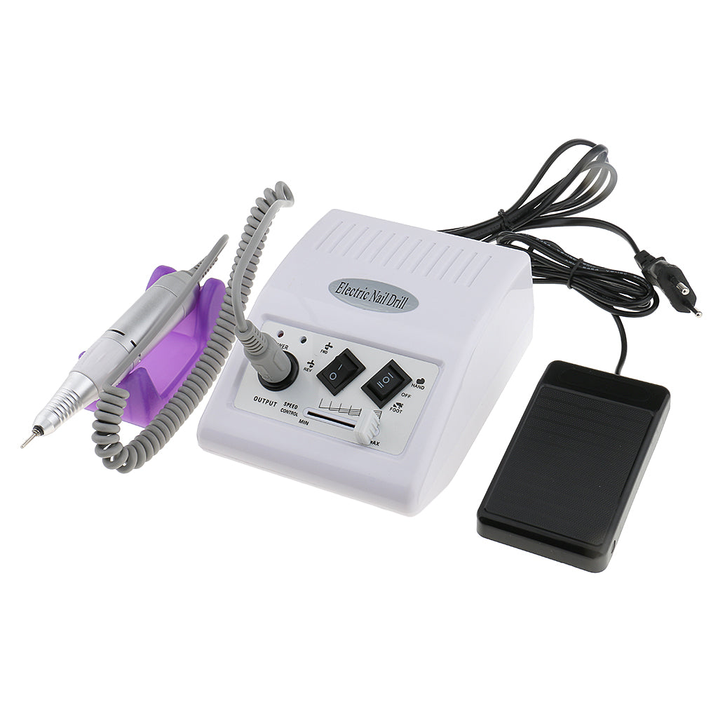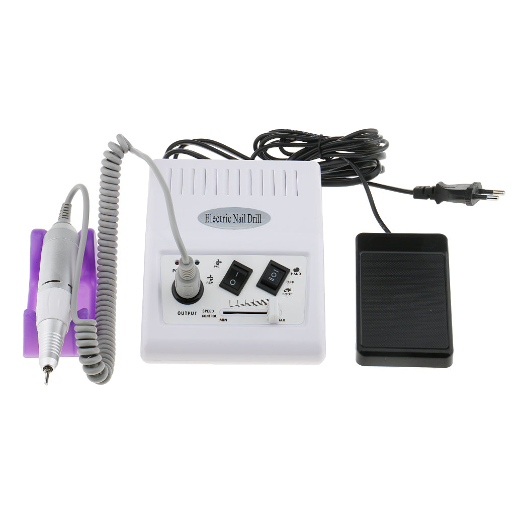 Come with a pedal, there are 2 buttons for the direction of the rotation and choice of either hand or foot pedal use.