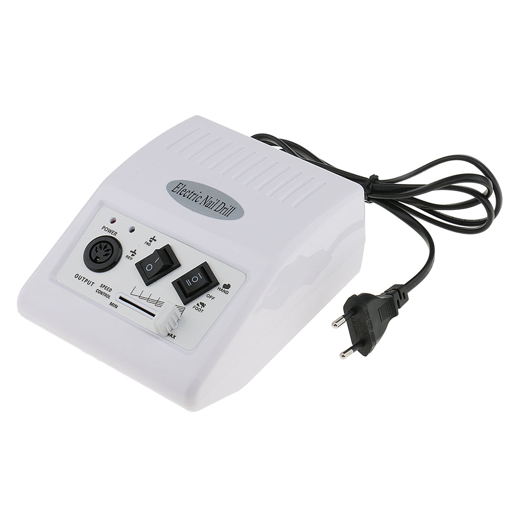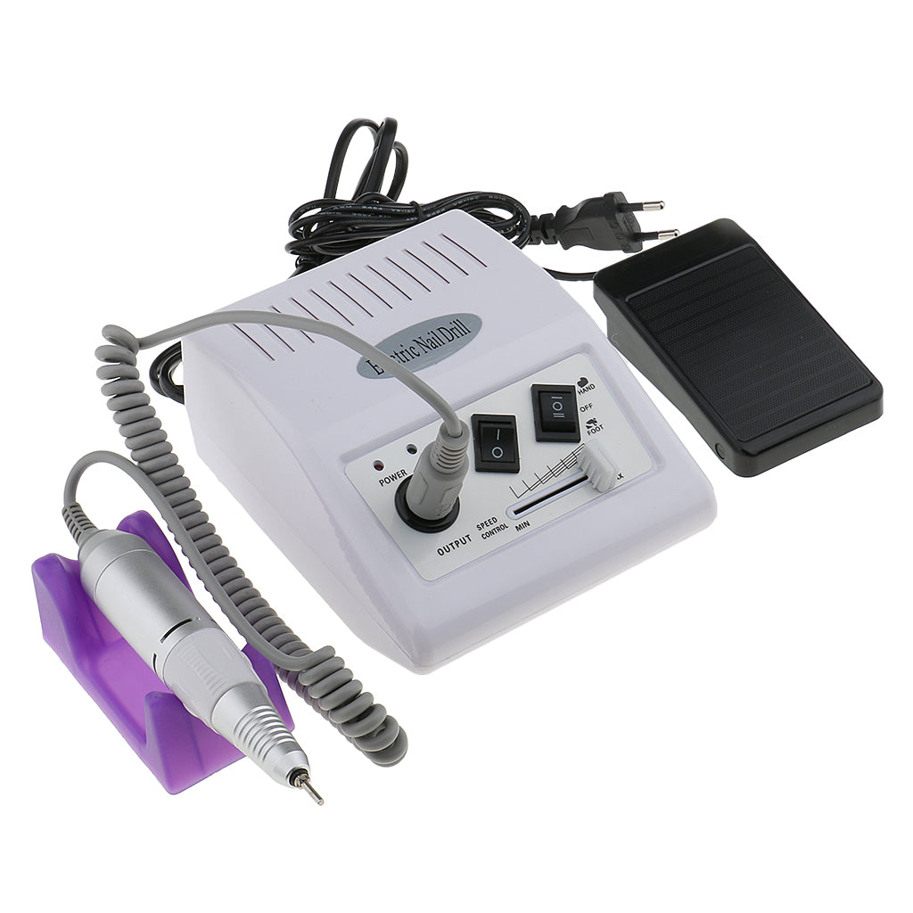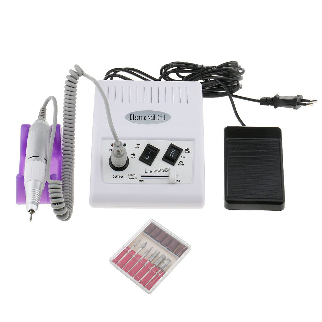 Come with a pedal, there are 2 buttons for the direction of the rotation and choice of either hand or foot pedal use.