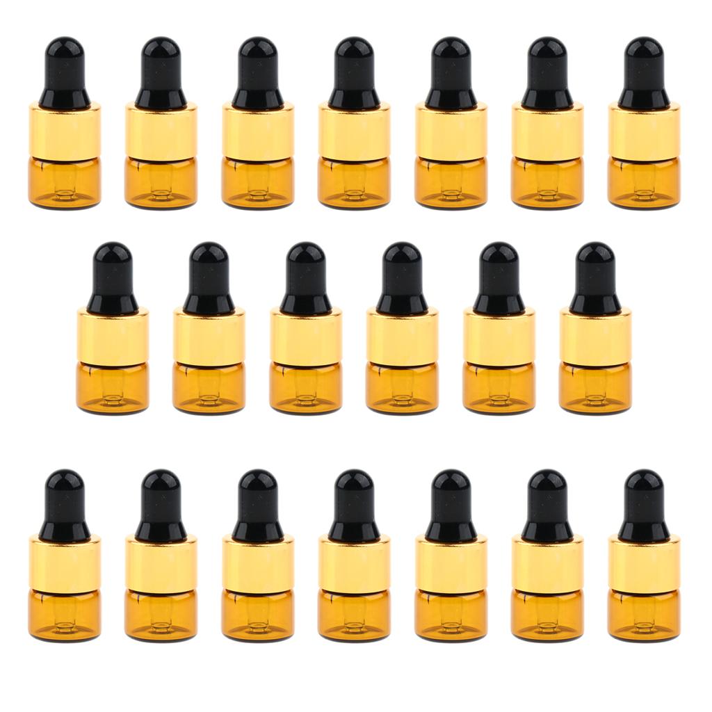 20 Pieces Mini Empty Glass Essential Oil Refillable Brown Amber Bottles 1ML