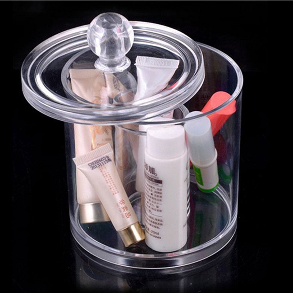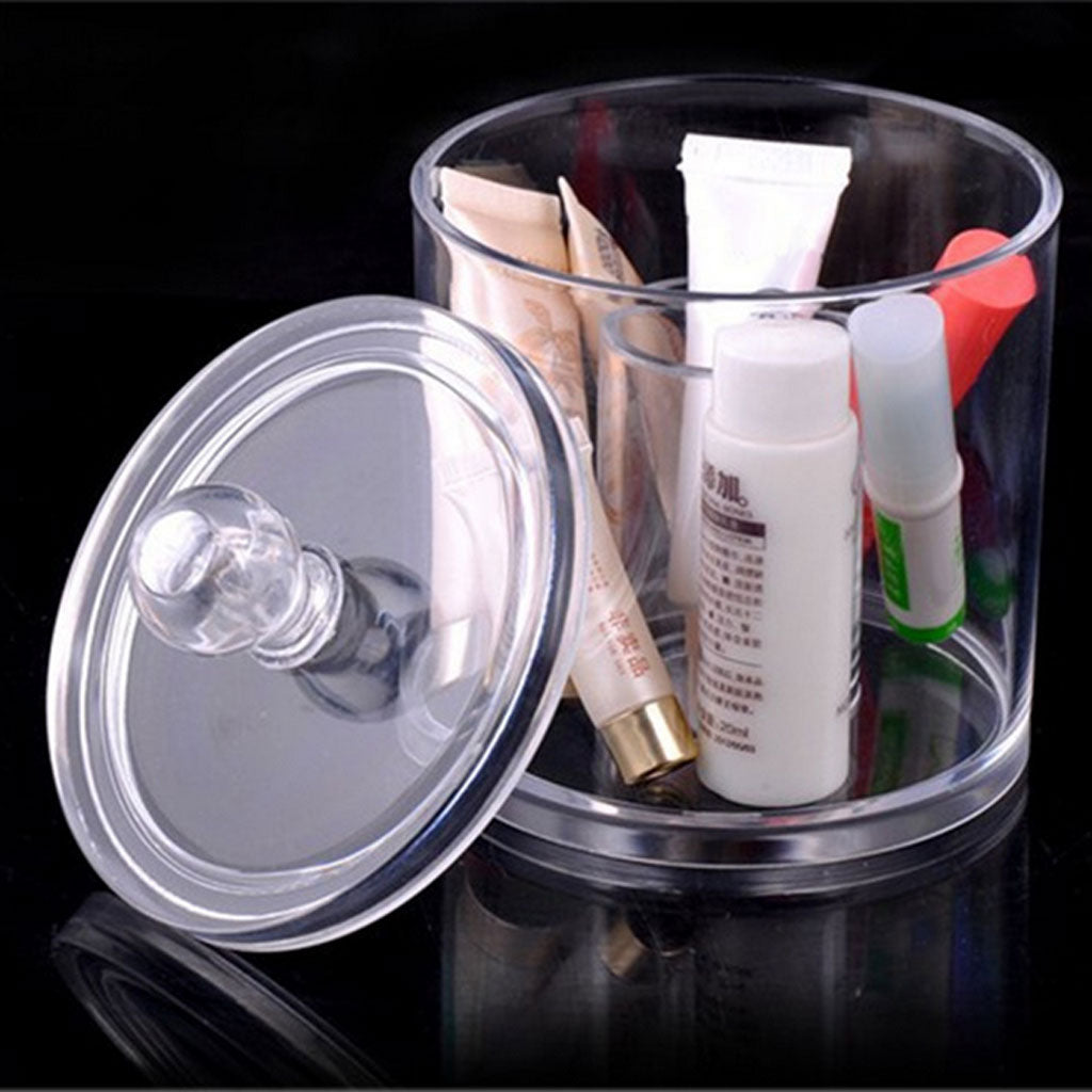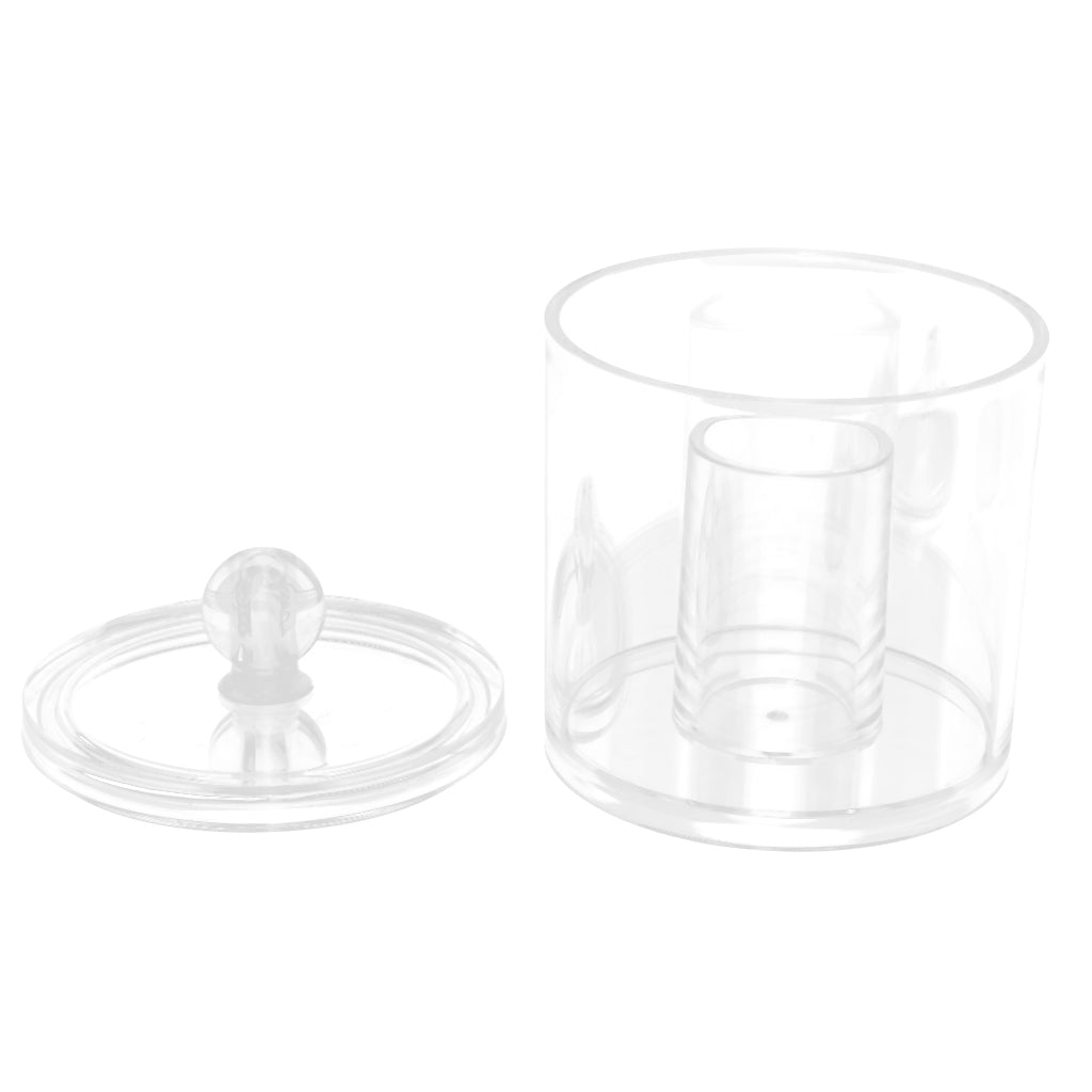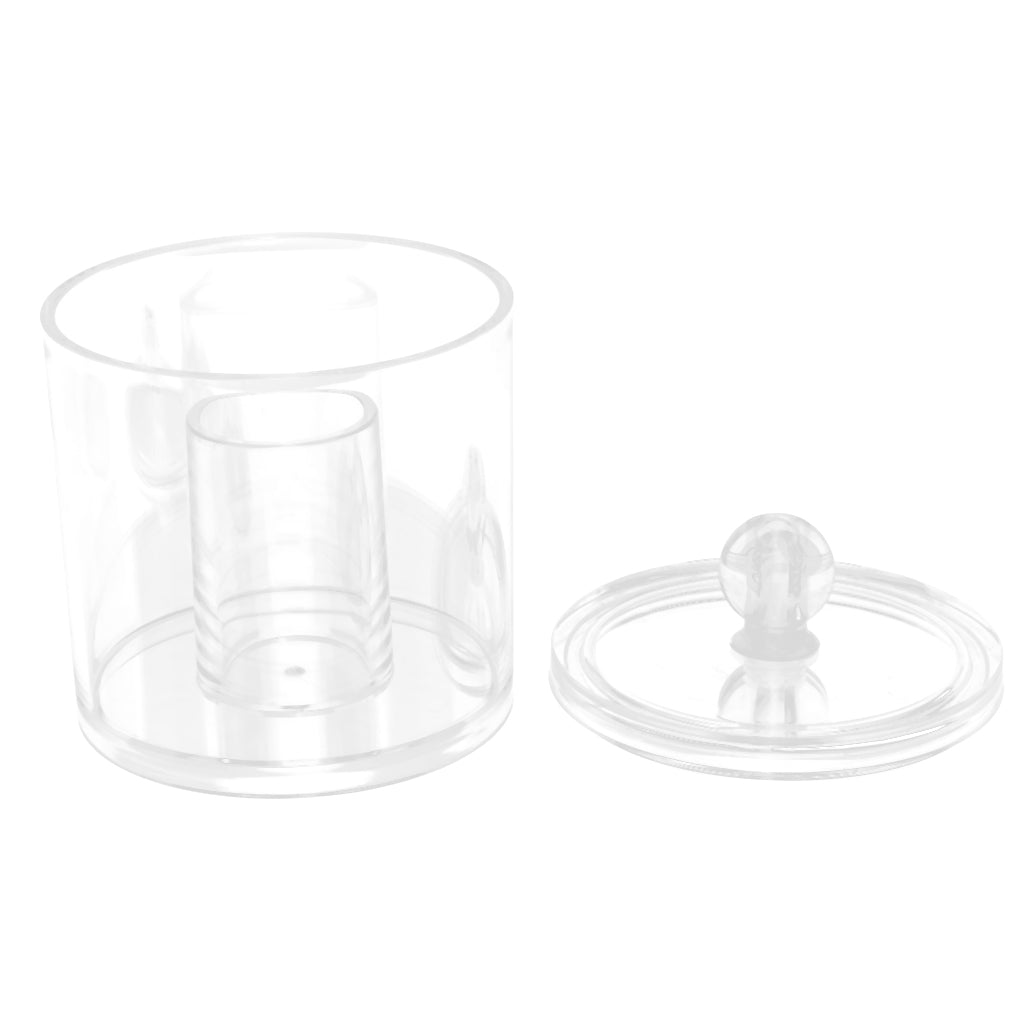 Store cotton swabs, cotton balls, makeup pads, and other bathroom accessories in this clear container.