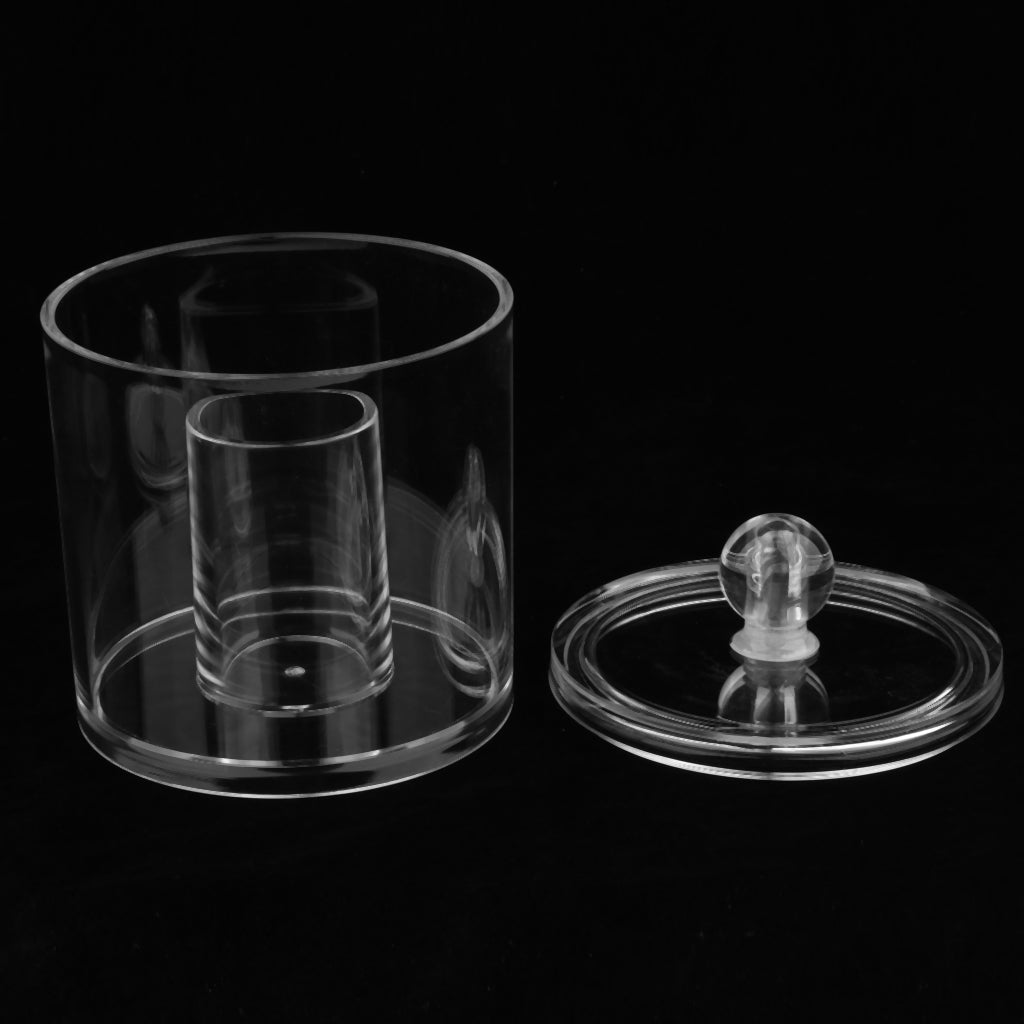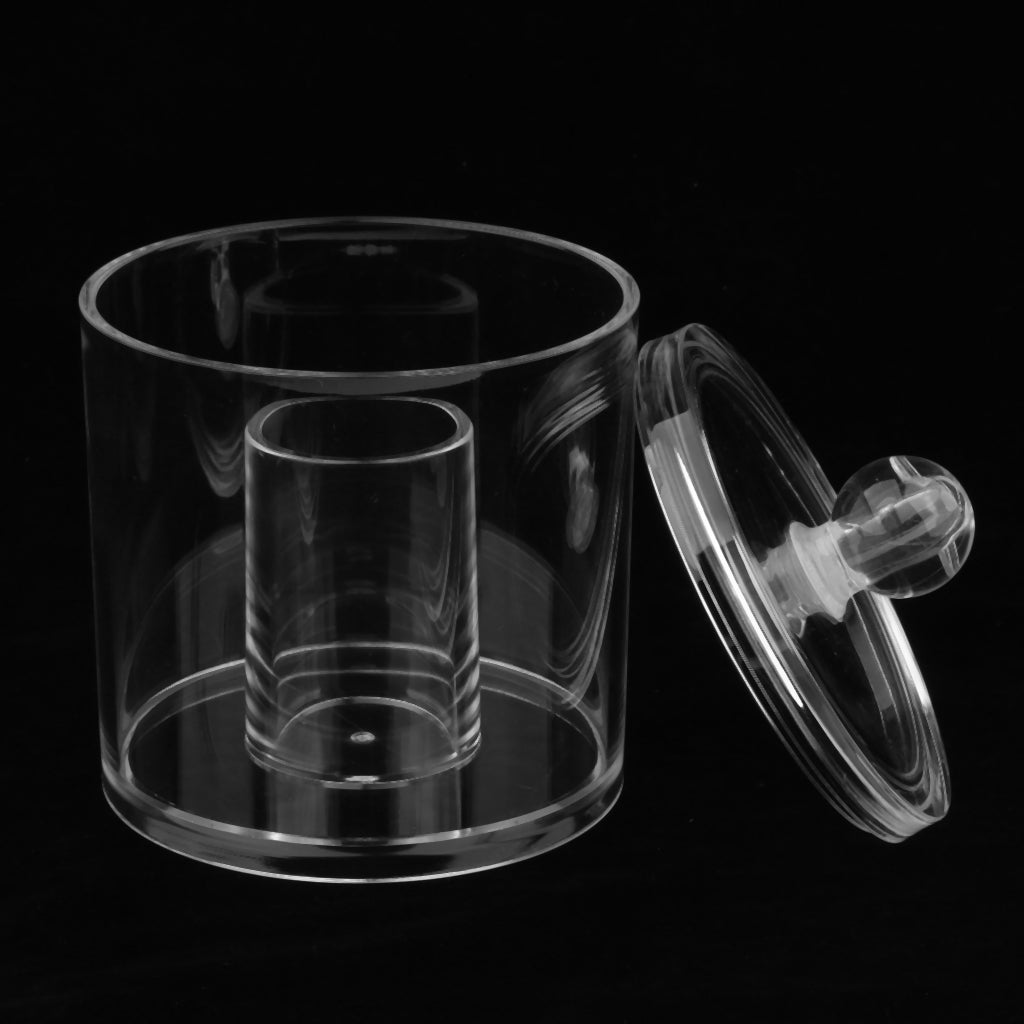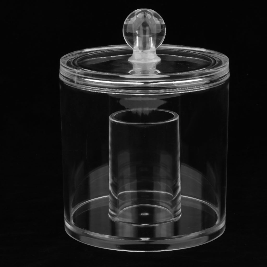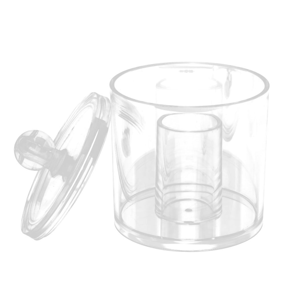 Store cotton swabs, cotton balls, makeup pads, and other bathroom accessories in this clear container.