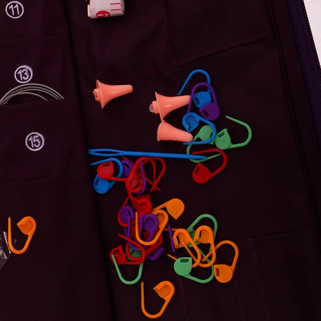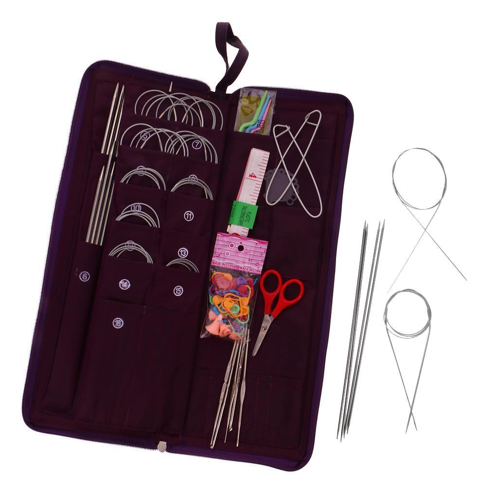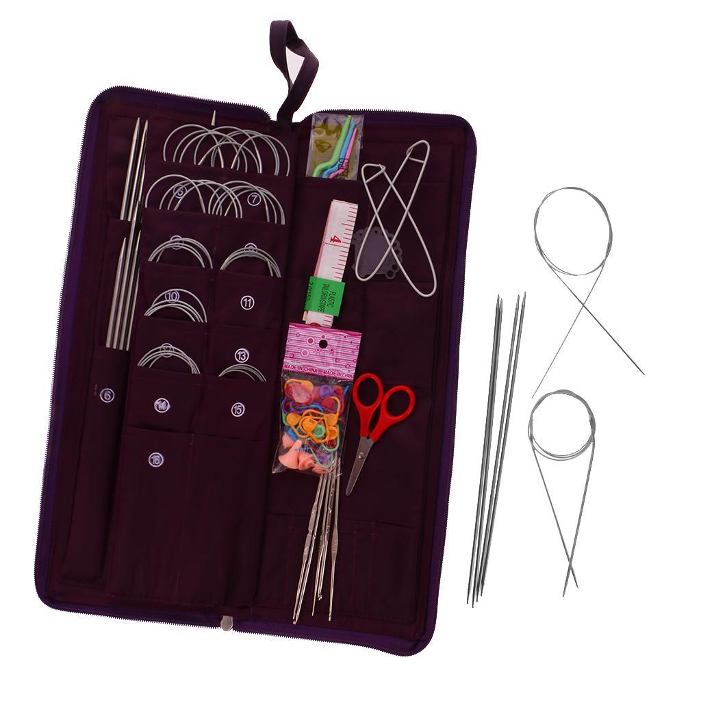 Package included16x36cm long needles,14x25cm needles,58x24cm needles,11x Circular needle,5xbearded needle,4x Plastic twist needle,1x tape measure,1x small scissors,1x plastic ruler gauge needle,2x Medium solution buttons,18x Small numbermarkers,4x Needle caps