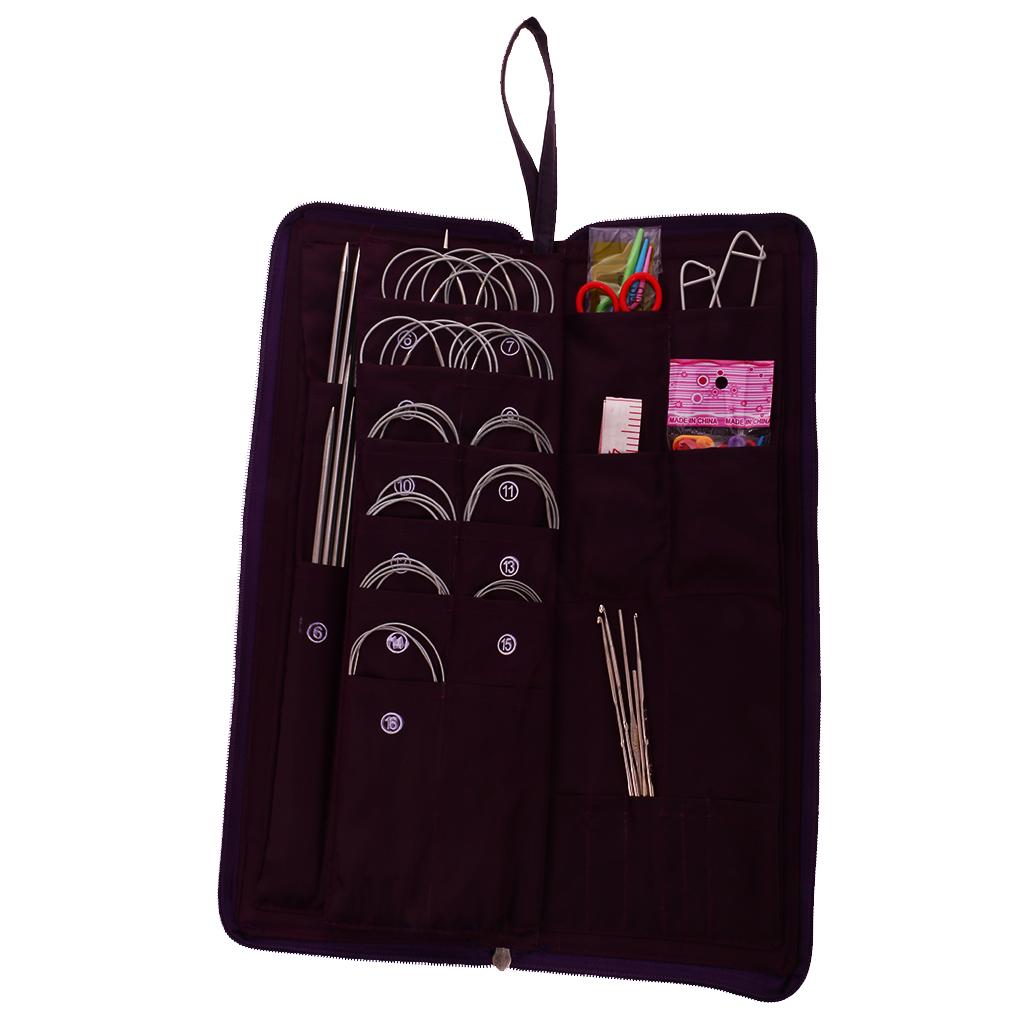 104pcs Pro Stainless Steel Straight Circular Knitting Needles Crochet Hook Weaving Set Craft Tools