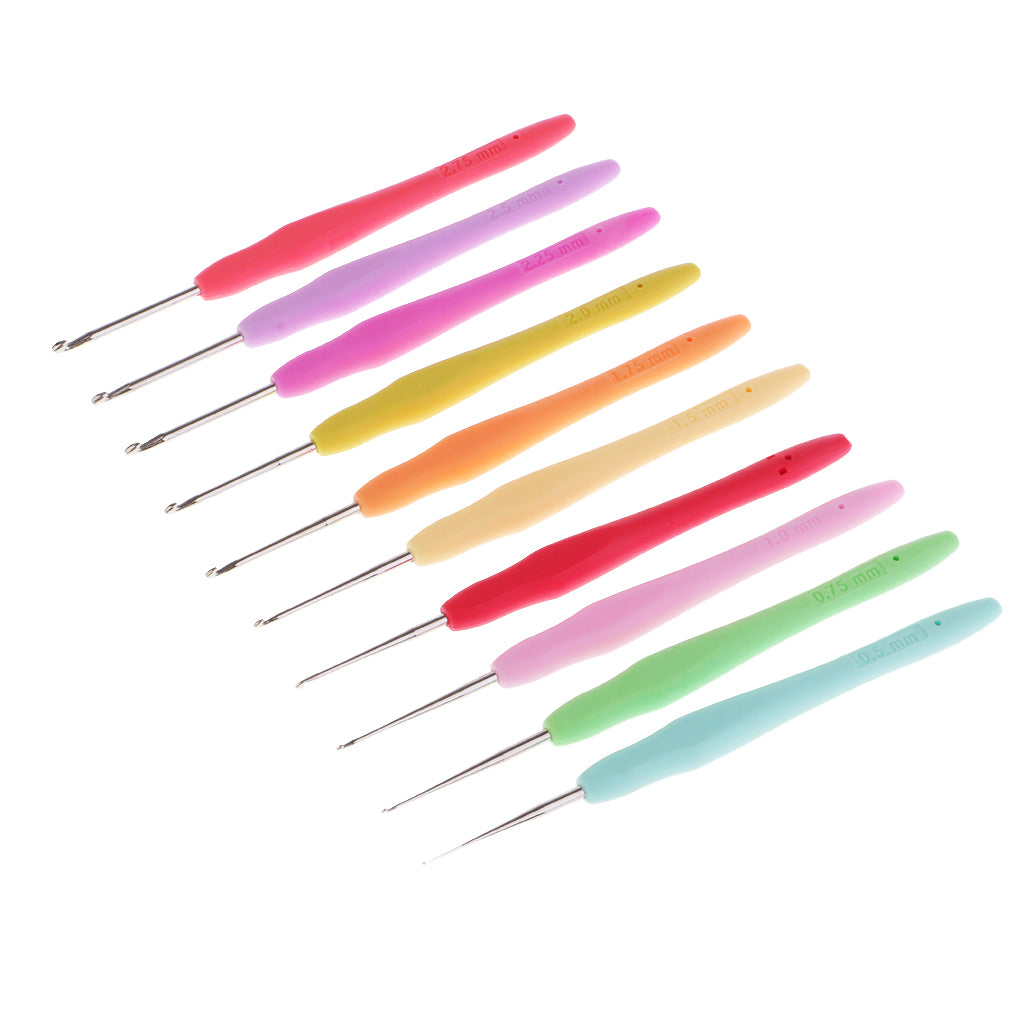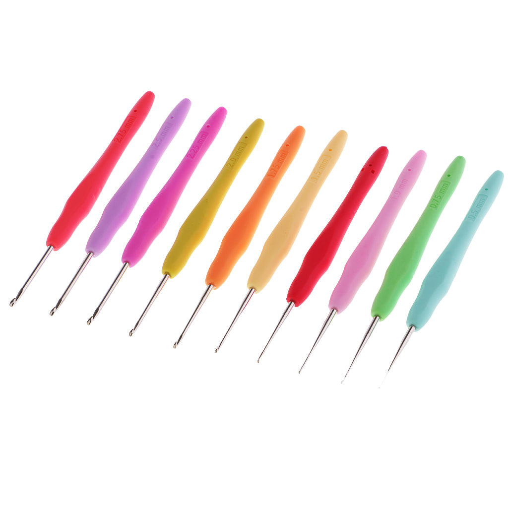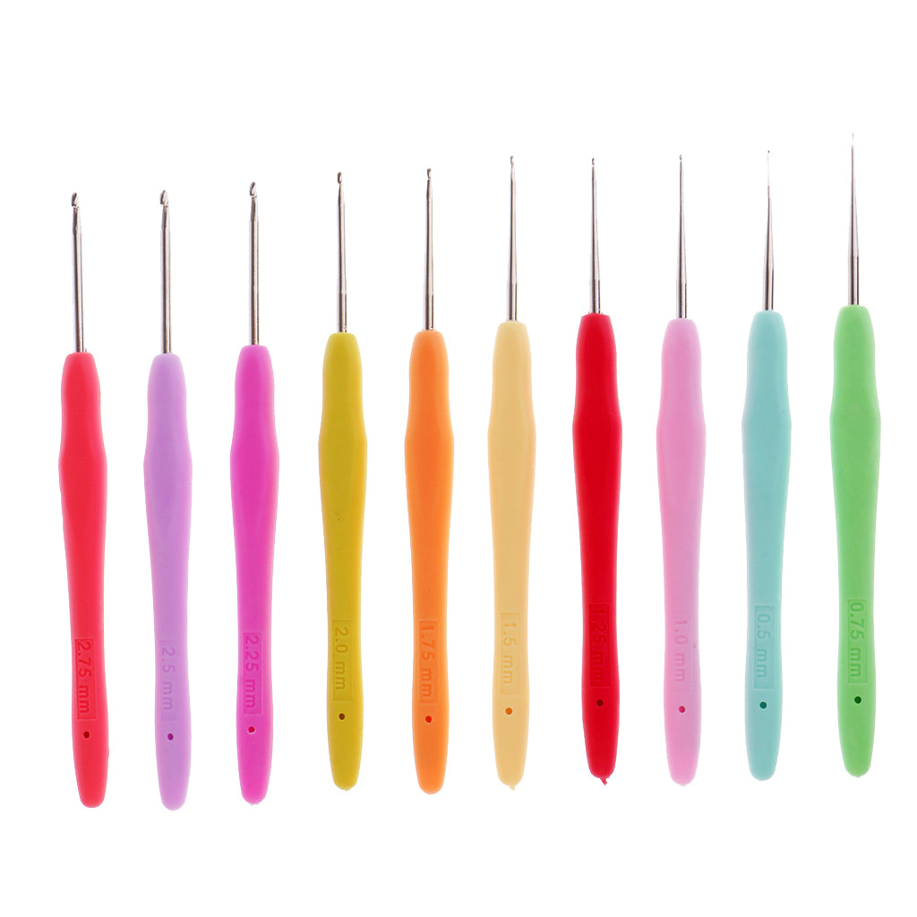 10pcs Colorful Metal Crochet Hooks Needles Set w/ Soft Handle 0.5-2.75mm