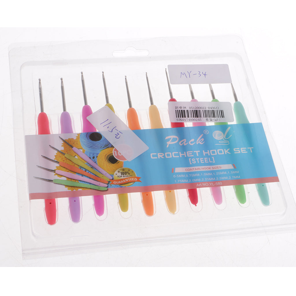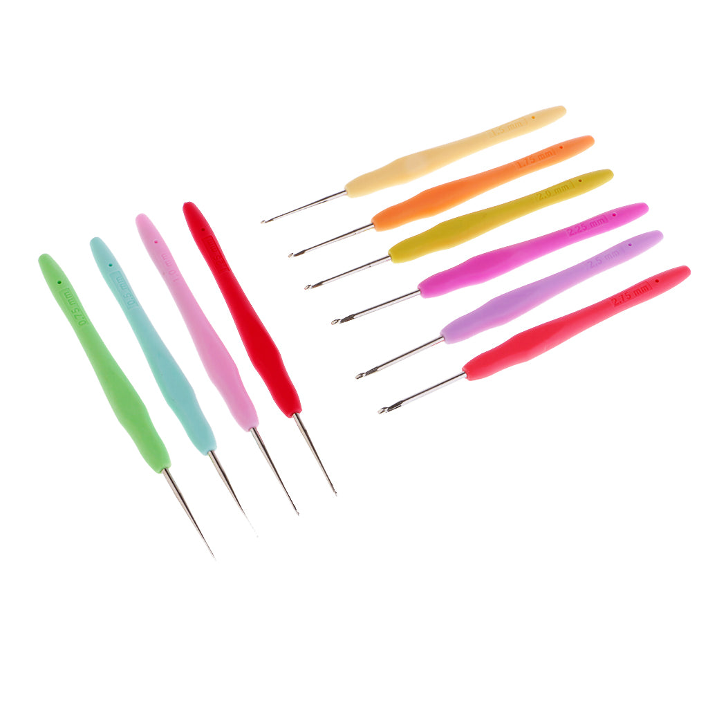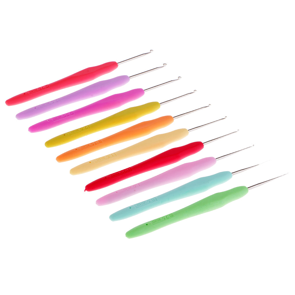 10pcs Colorful Metal Crochet Hooks Needles Set w/ Soft Handle 0.5-2.75mm