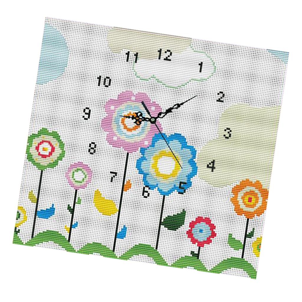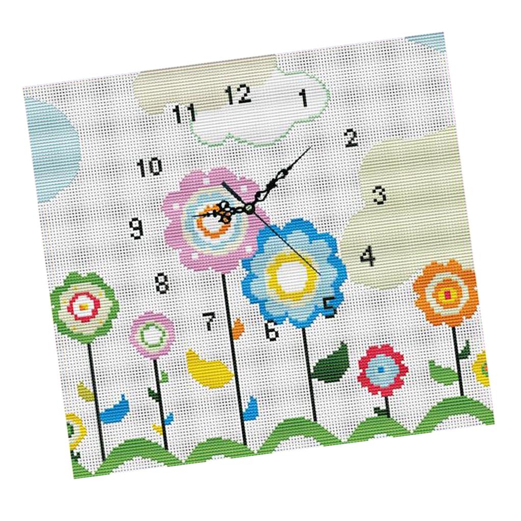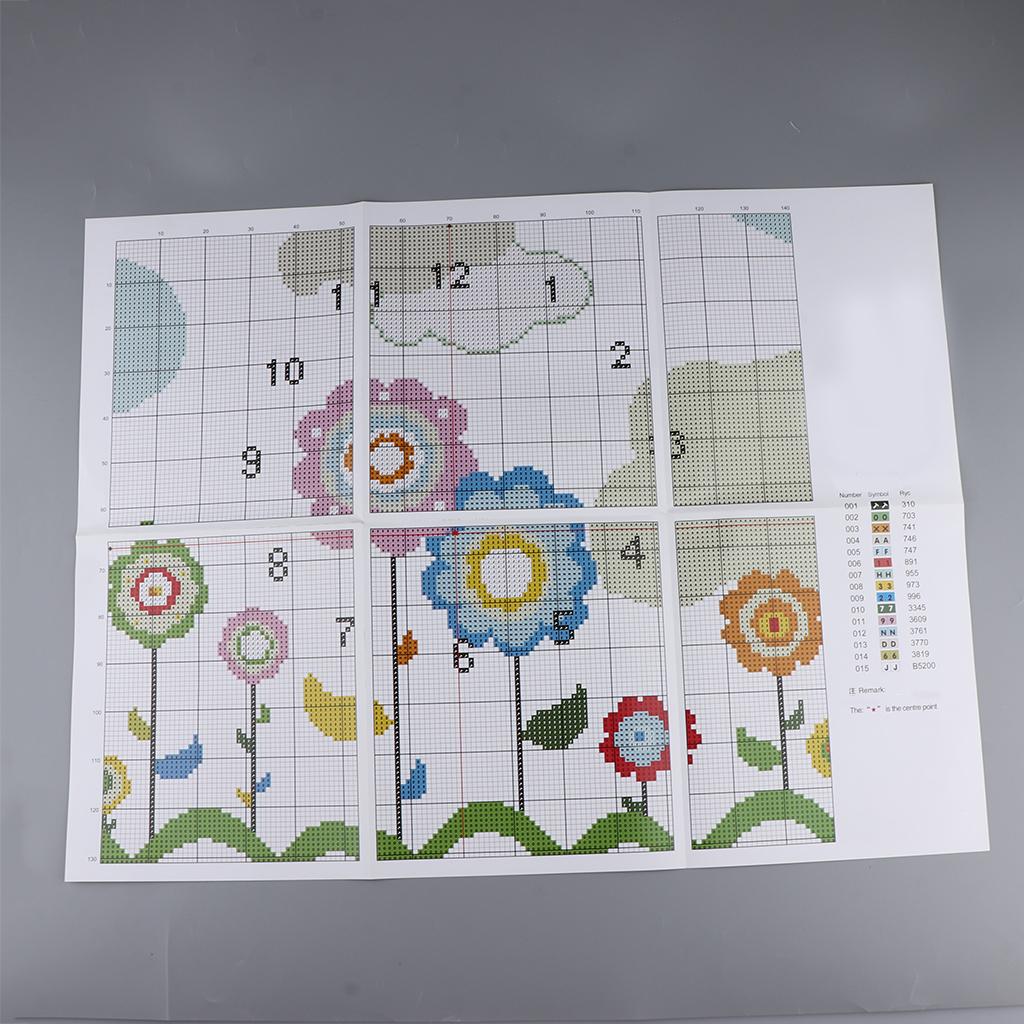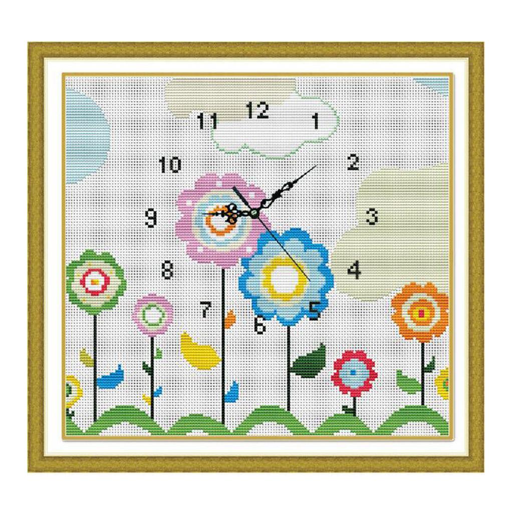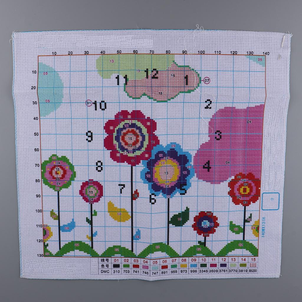 11CT 40x38cm Flower Clock Stamped Cross Stitch Kit DIY Handmade Needlework for Beginners Kids Adults
