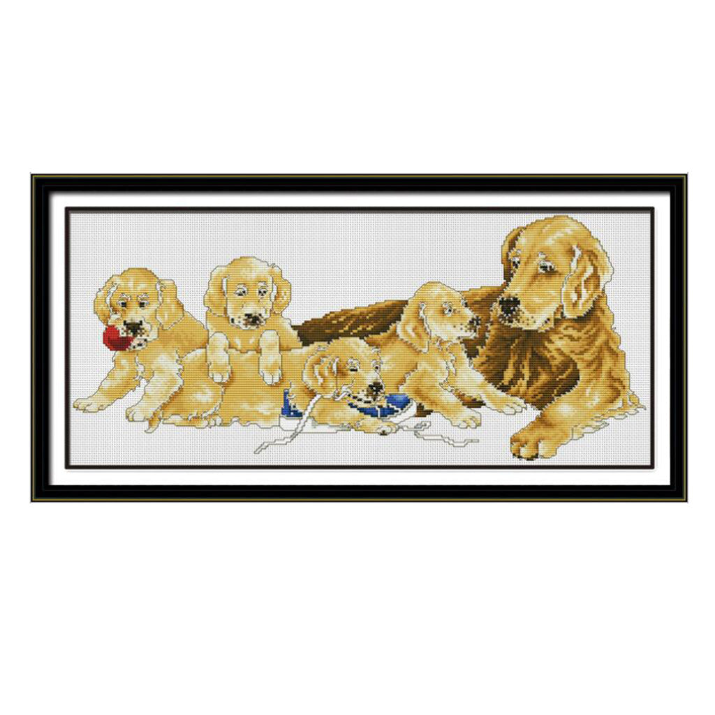 11CT 66x33cm Animal Dogs Stamped Cross Stitch Kit DIY Handmade Needlework for Beginners Kids Adults