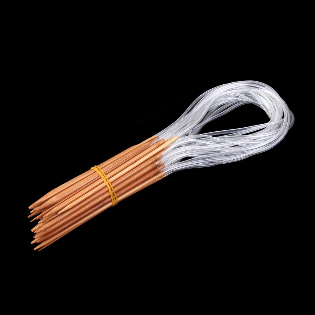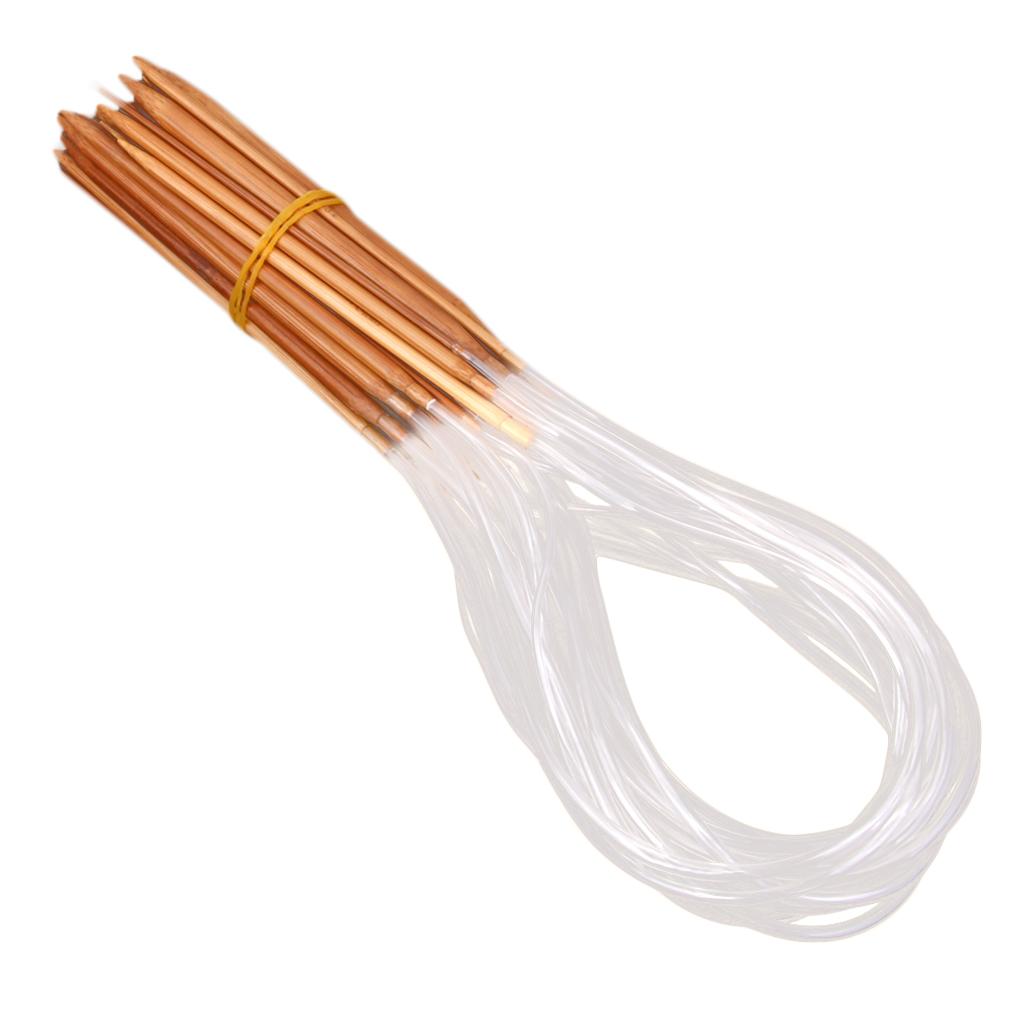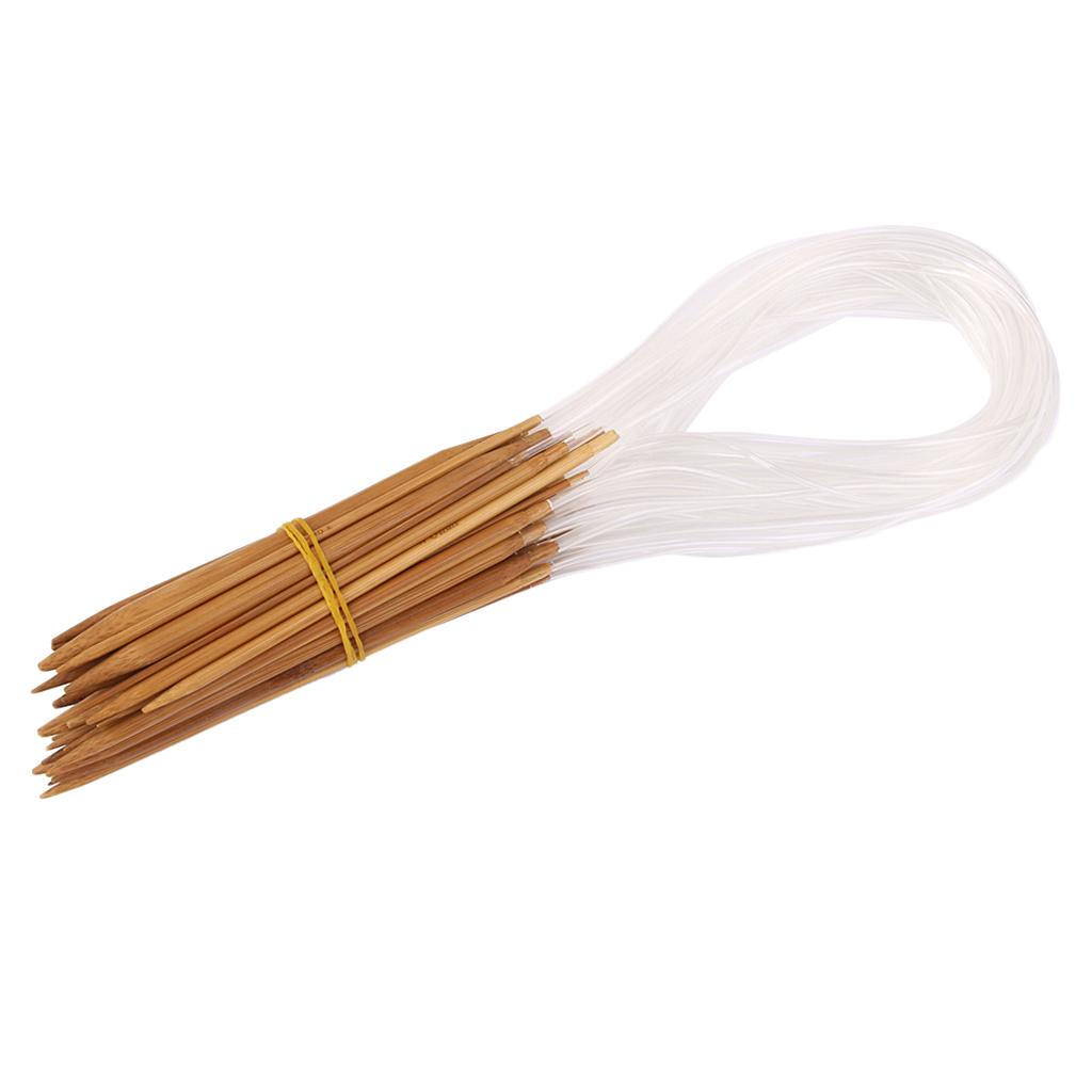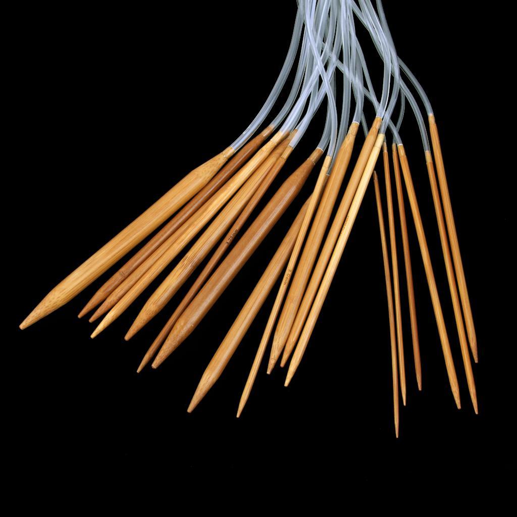 This set of 14 sizes superior quality bamboo circular knitting needles. Nice needles with smooth finish. The more you knit with them, the more you will love to knit.