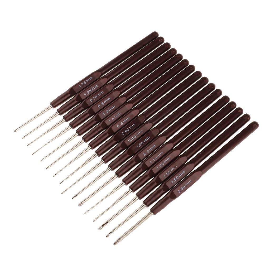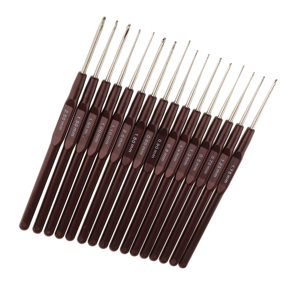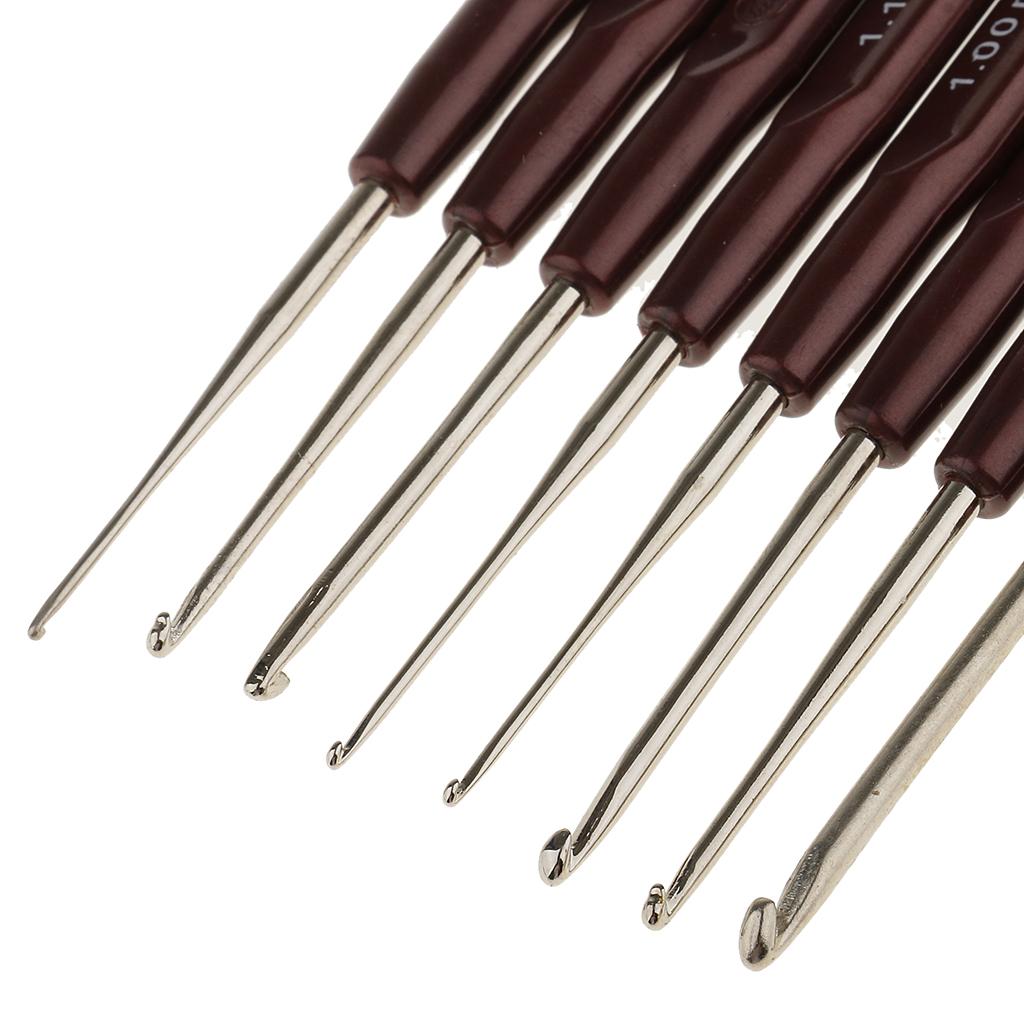 16 Sizes Brown Plastic Handle Aluminum Crochet Hooks Knitting Needles Set Sewing Tools