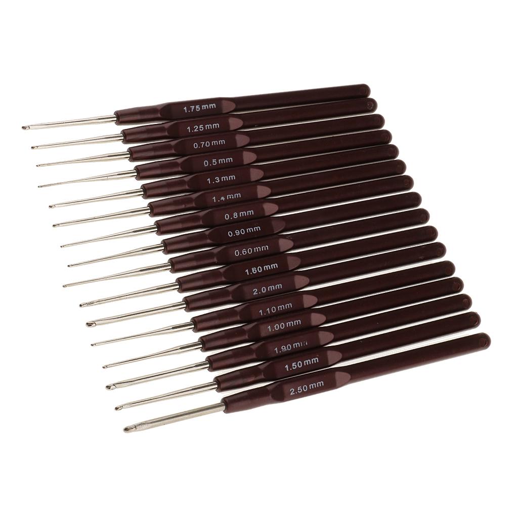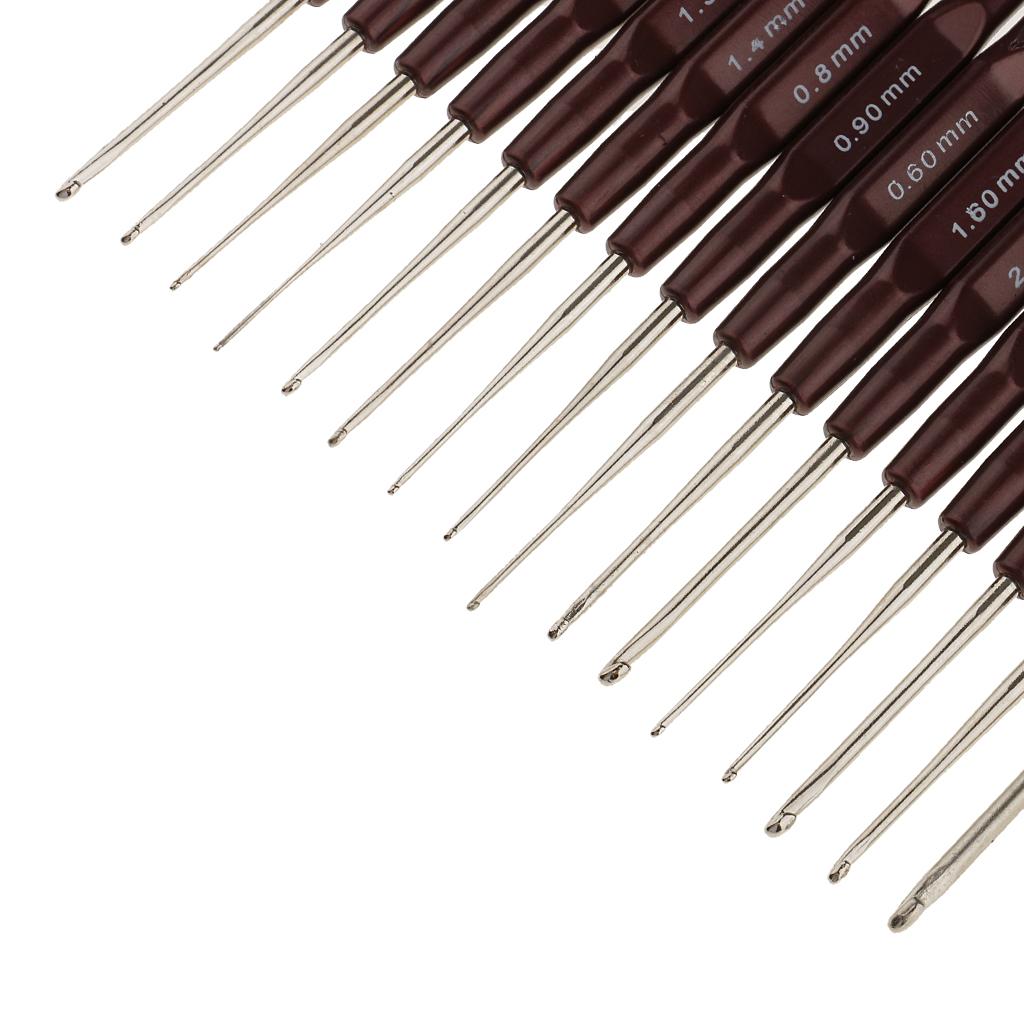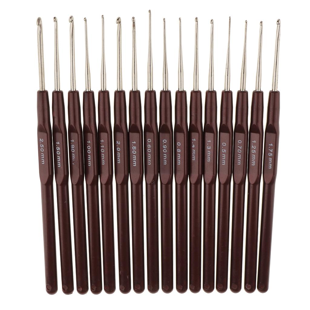 16 Sizes Brown Plastic Handle Aluminum Crochet Hooks Knitting Needles Set Sewing Tools