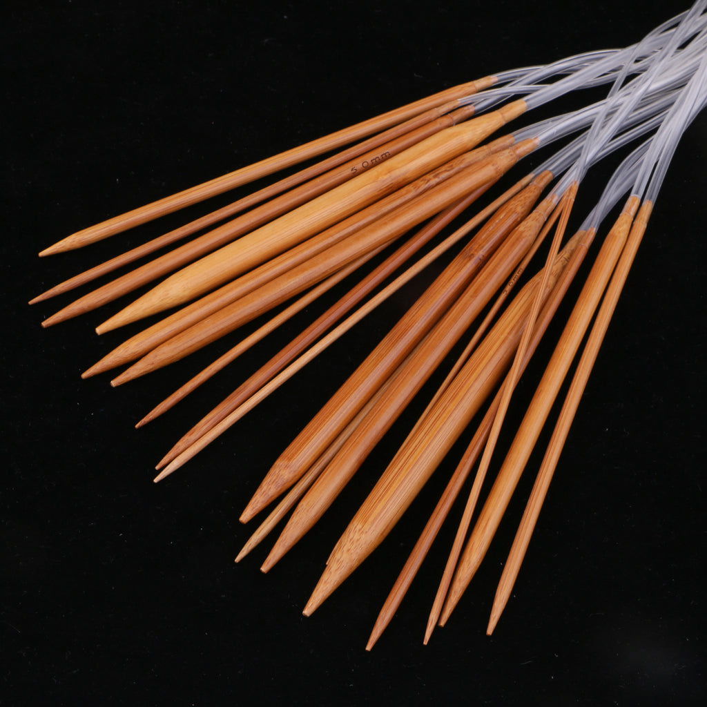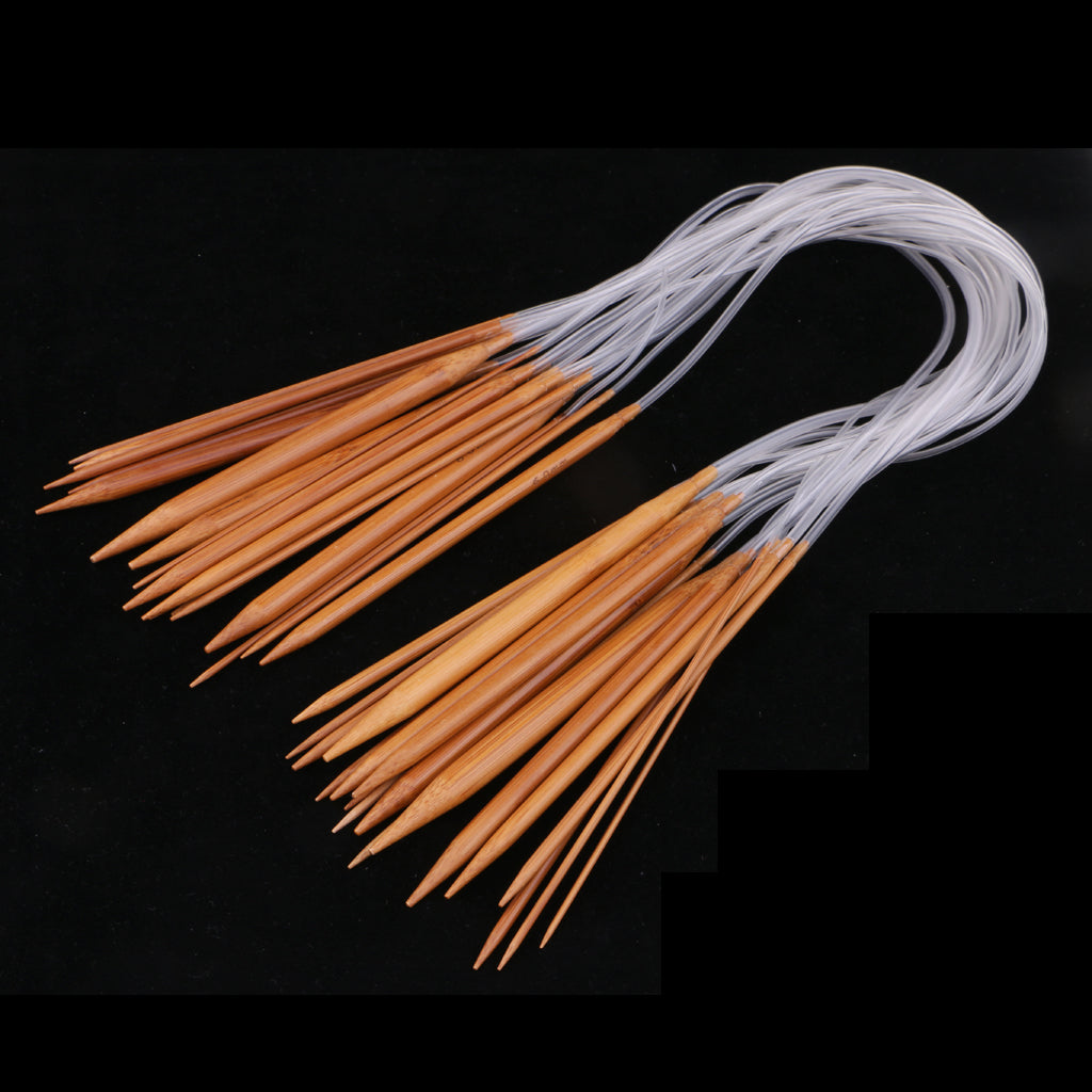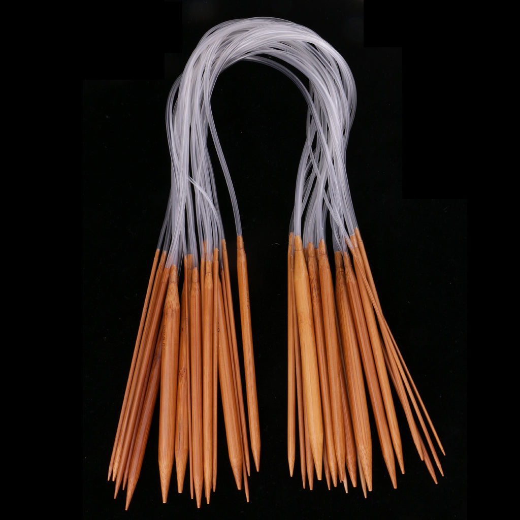 18 Sizes Bamboo Circular Knitting Needles Set with Plastic Tube 2-10mm 60cm