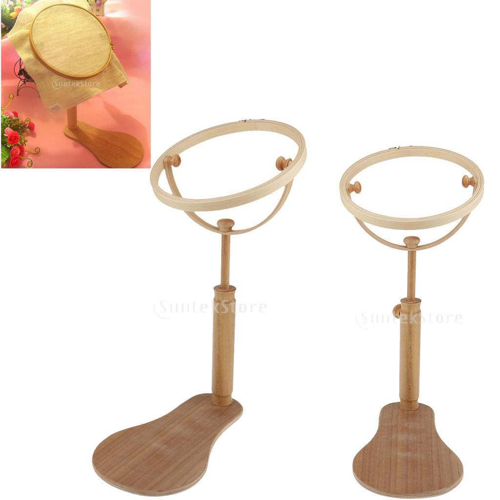 2 Pieces/Set Diameter 22cm 24cm Beech Wood Wooden Embroidery Hoop Wood Frame Cross Stitch Rack Stand Adjustable 31-42cm and 35-46cm