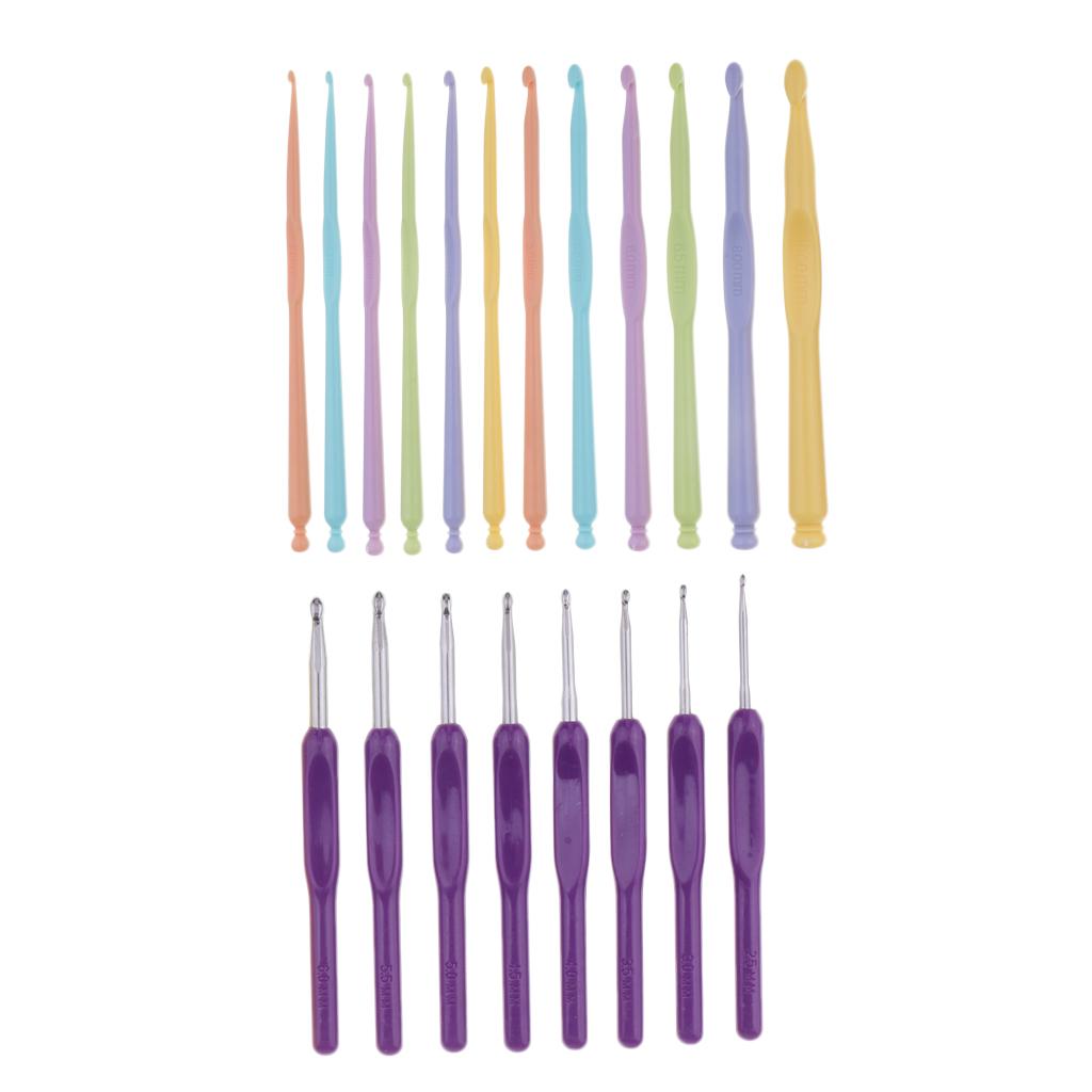 12 Pieces Plastic Crochet Hooks + 8 Pieces Aluminum Crochet Hooks