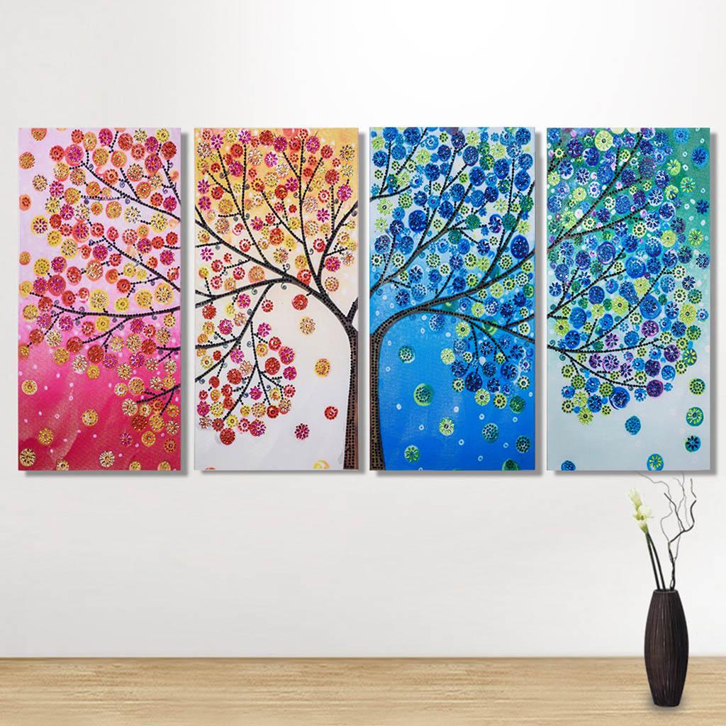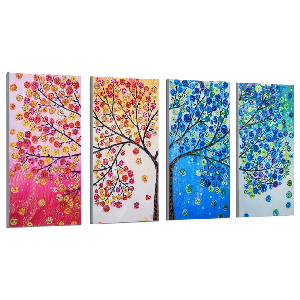 4 Set DIY Special Shaped 5D Seasons Tree Diamond Painting Kit Partial Drill Rhinestone Embroidery Arts Craft