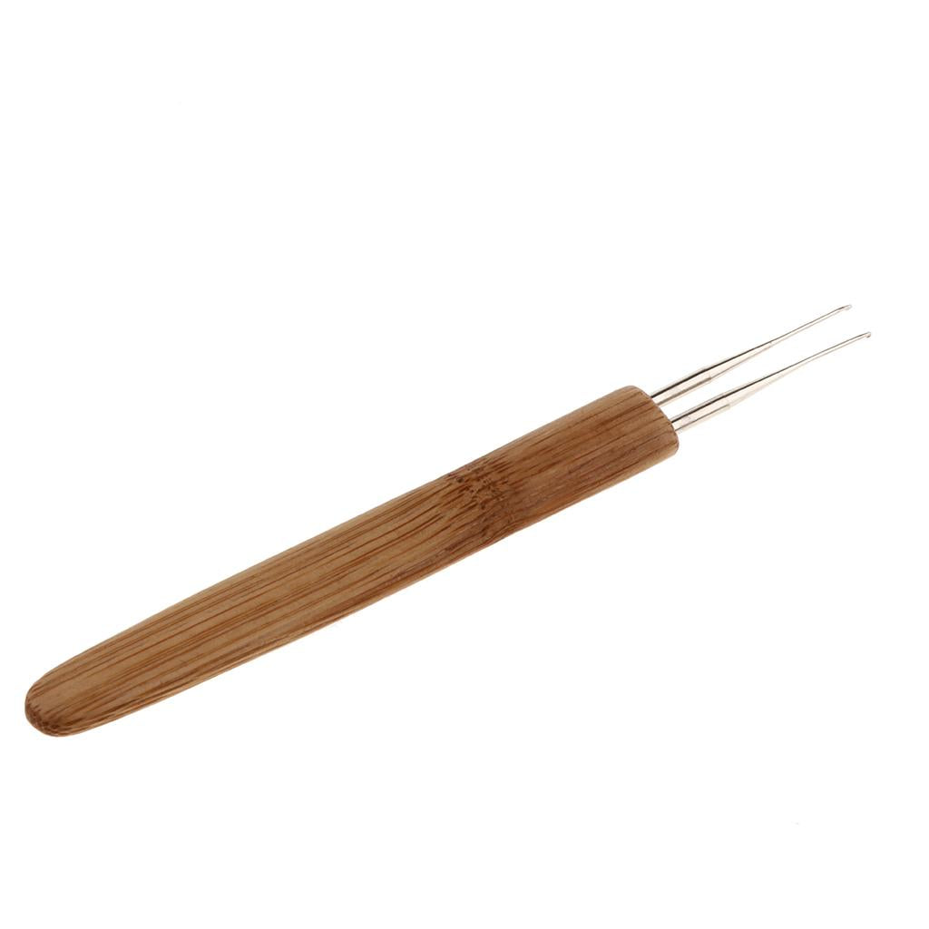5pcs Natural Wood Handle Hair Weaving Extensions Crochet Needles + 2pcs Double Dreading Hooks Braid Craft Set 0.5mm