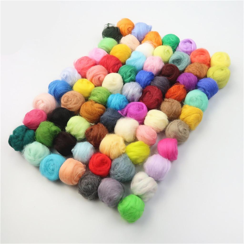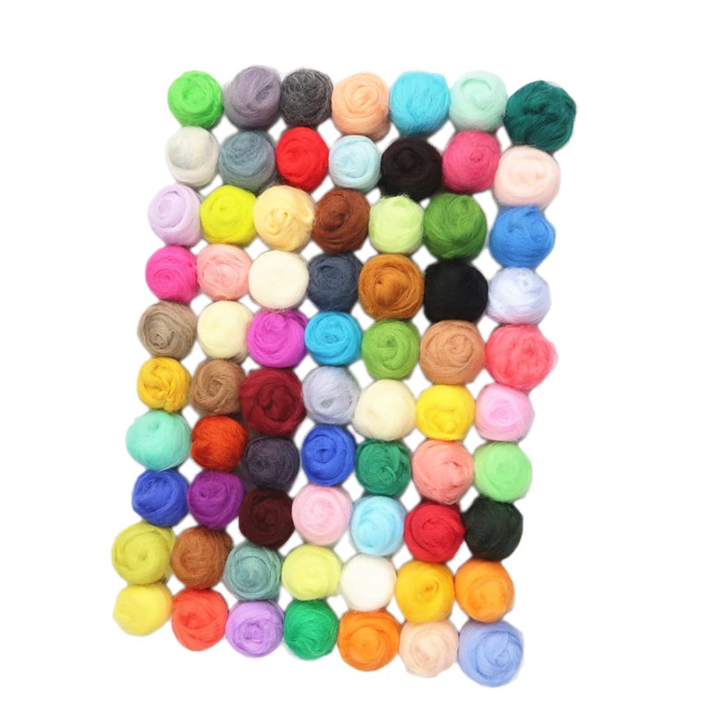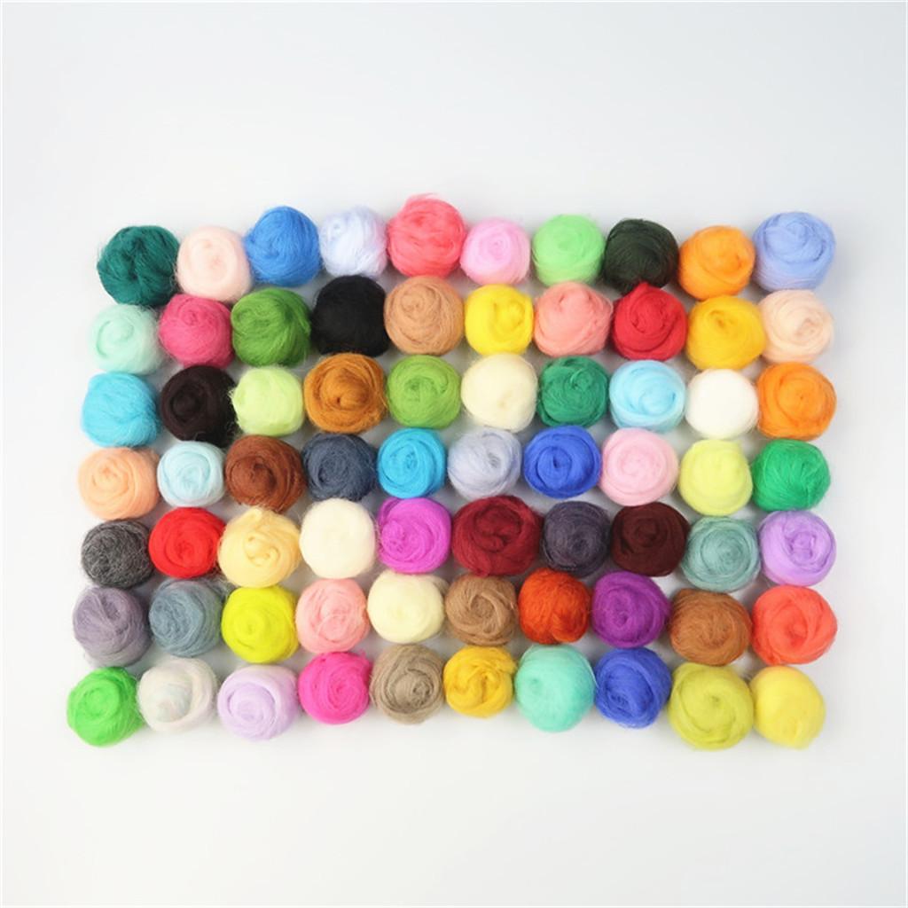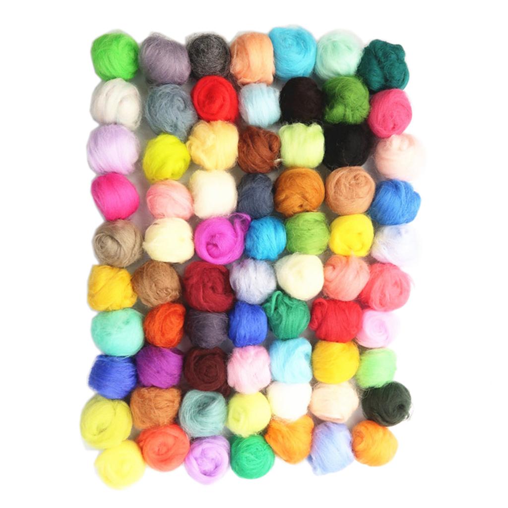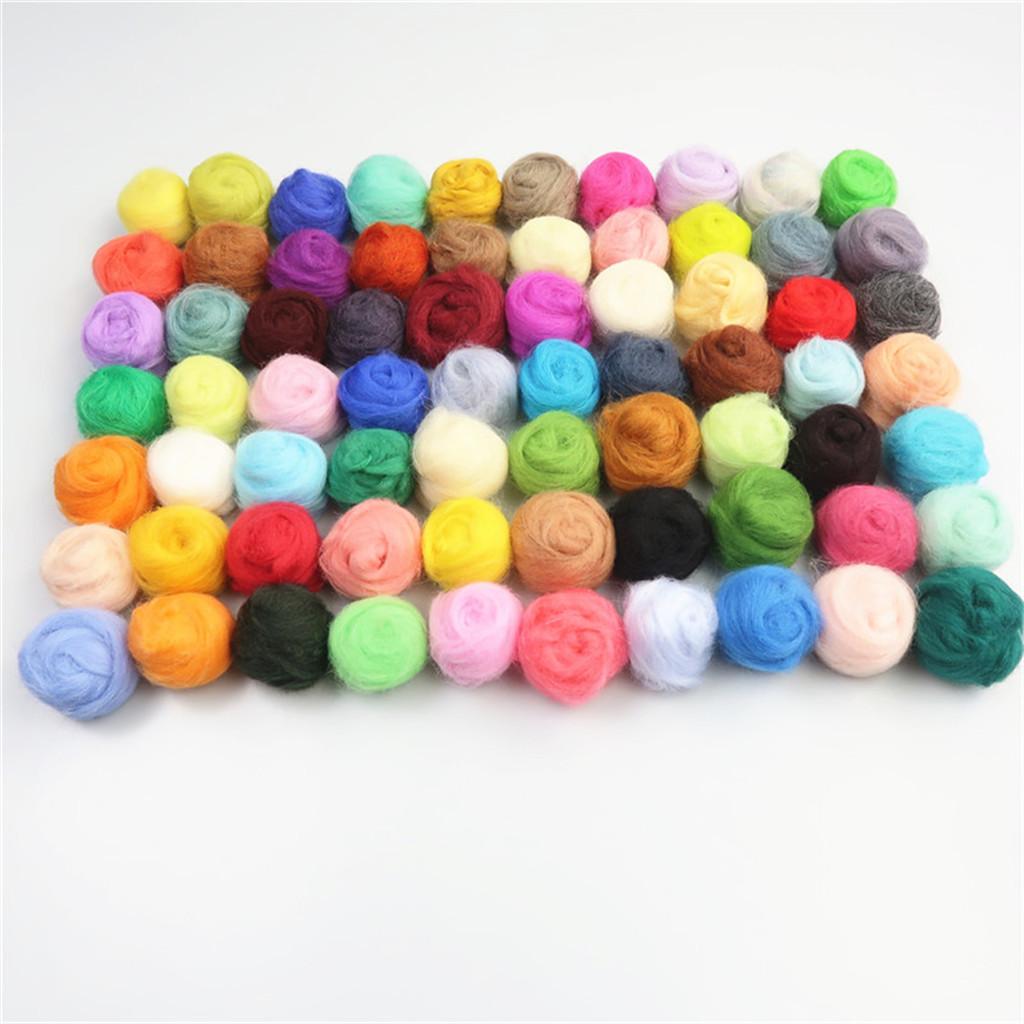70Pcs Handmade Soft Wool Felt Materials Roving Fibre Needle Felting Crafts