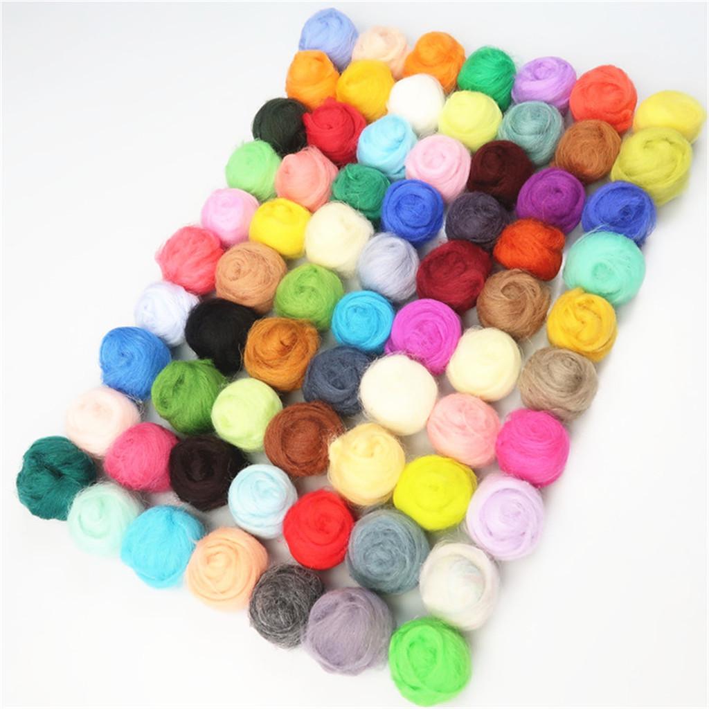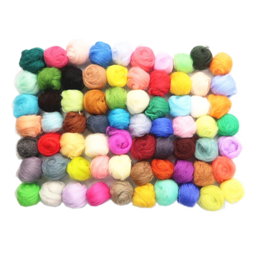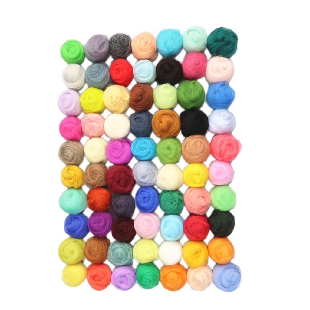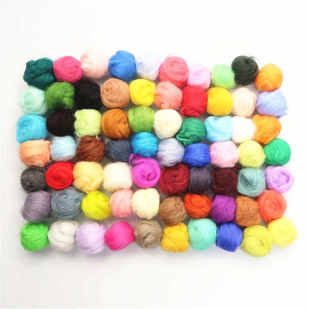 70Pcs Handmade Soft Wool Felt Materials Roving Fibre Needle Felting Crafts