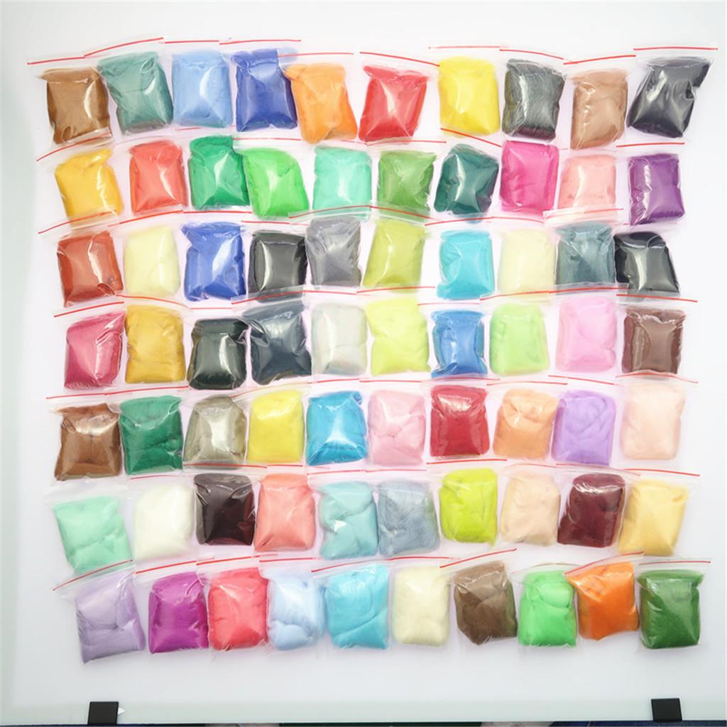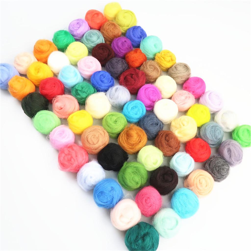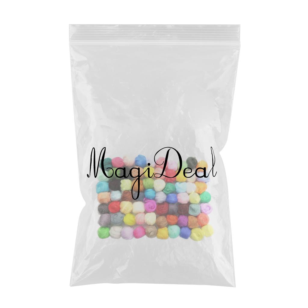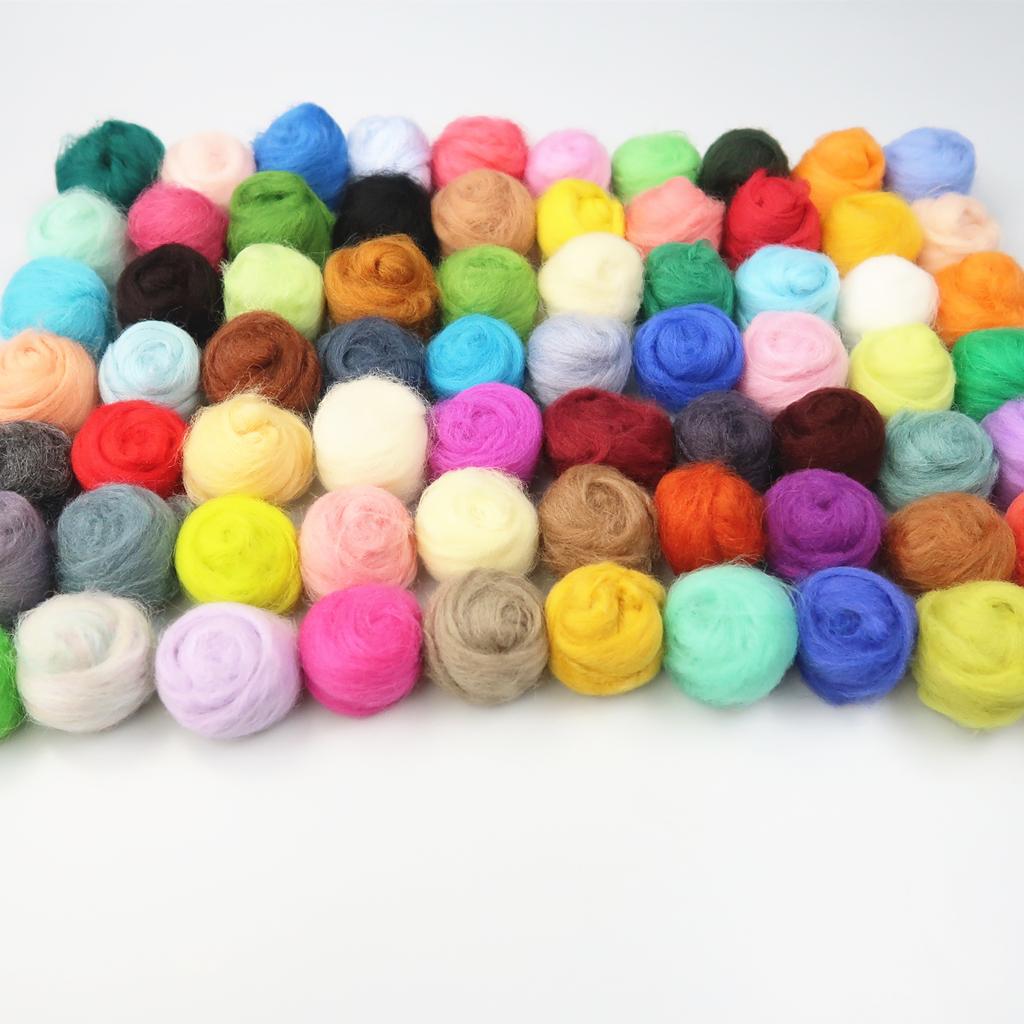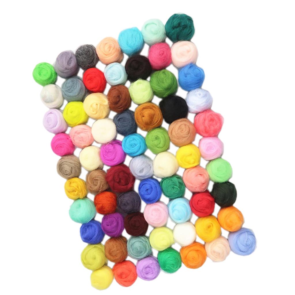 70Pcs Handmade Soft Wool Felt Materials Roving Fibre Needle Felting Crafts