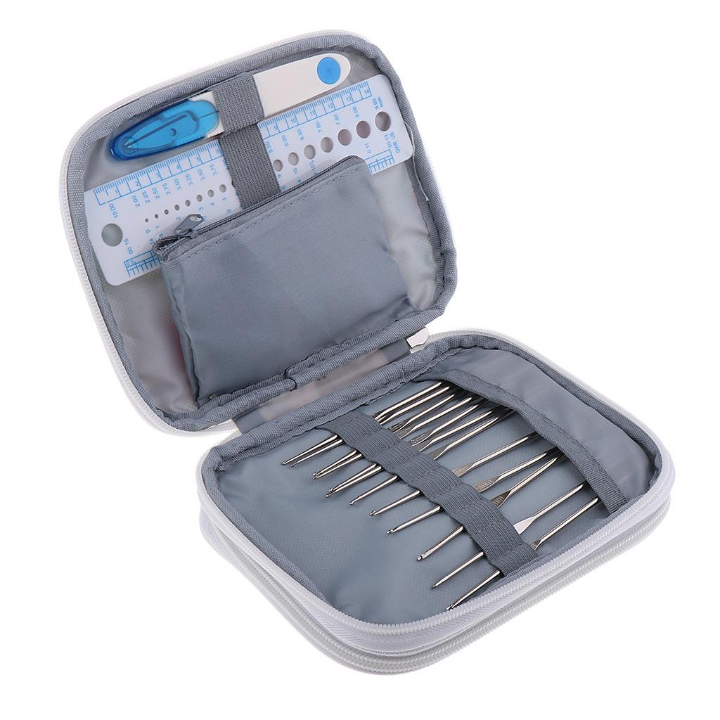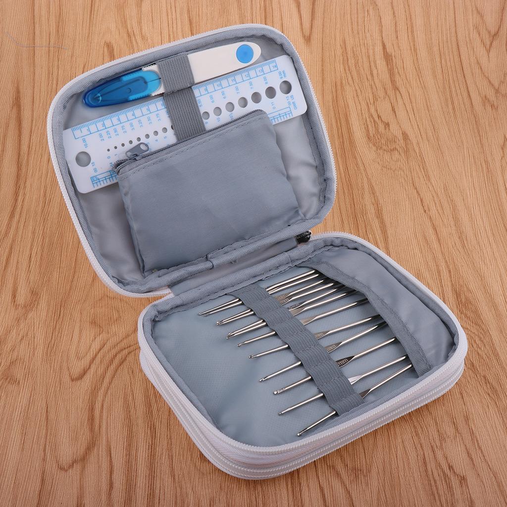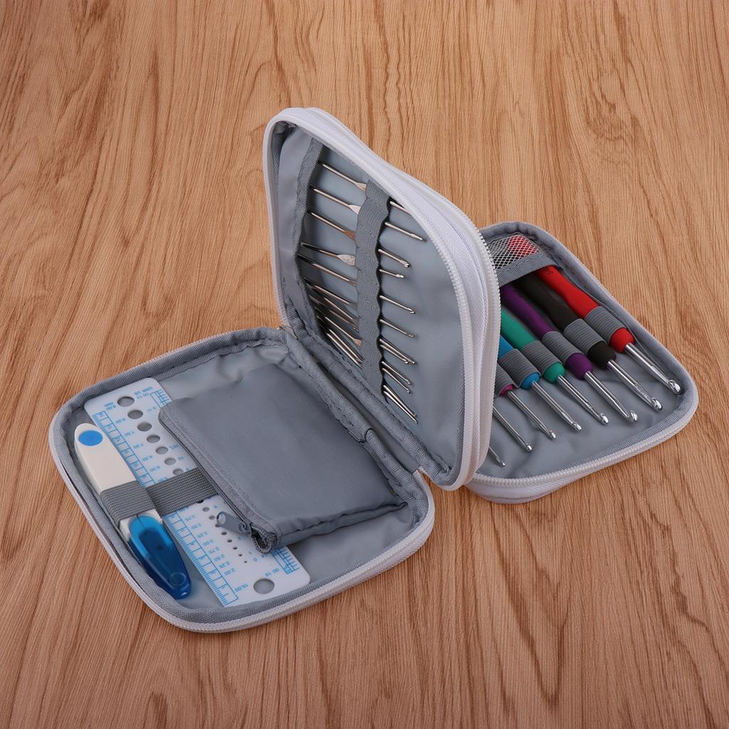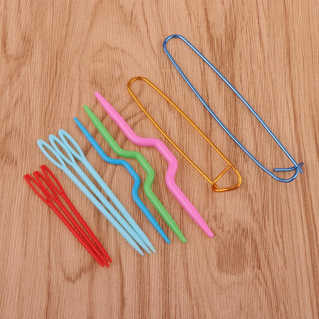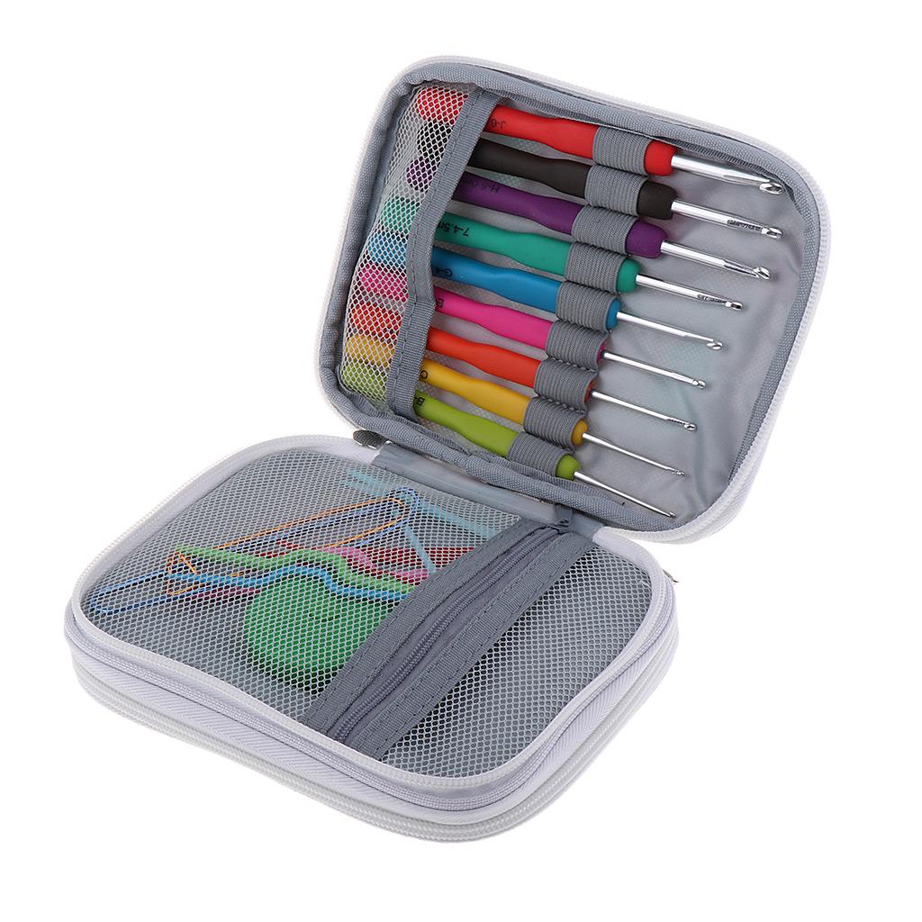 Includes varies crocheting tools : bead head pins, stitch markers, plastic needles, row counter, yarn scissor, ruler, measure tape, ect.