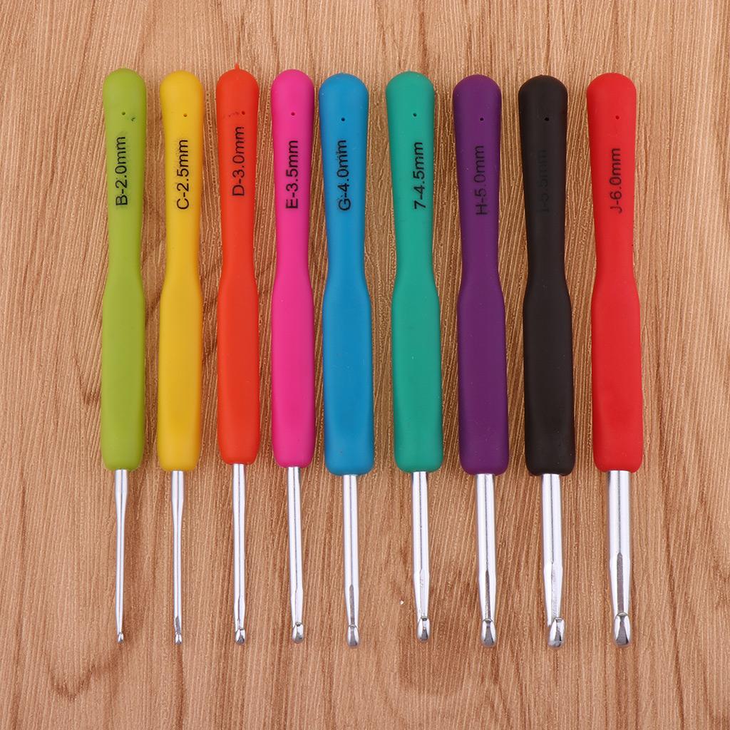 9xCrochet Hooks -Size: B (2.0mm), C (2.5mm), D (3.0mm), E (3.5mm), G (4.0mm), 7 (4.5mm), H (5.0mm), I (5.5mm), J (6.0mm)