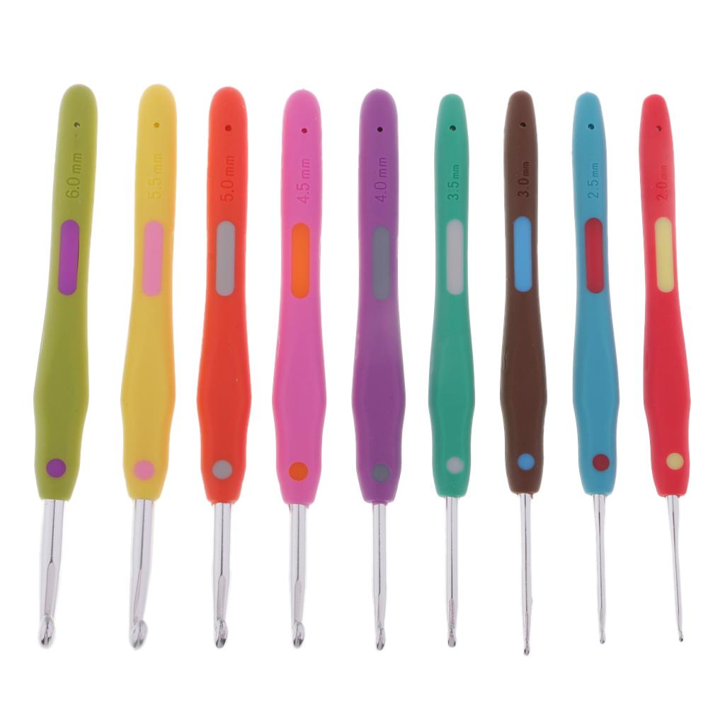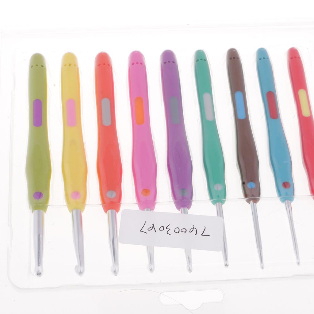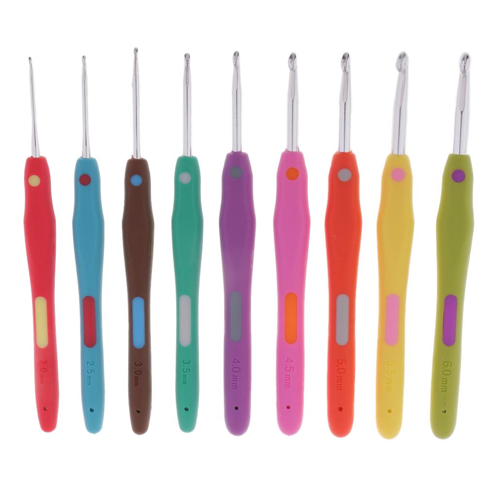 9 Pieces Plastic Handle Aluminum Crochet Hooks