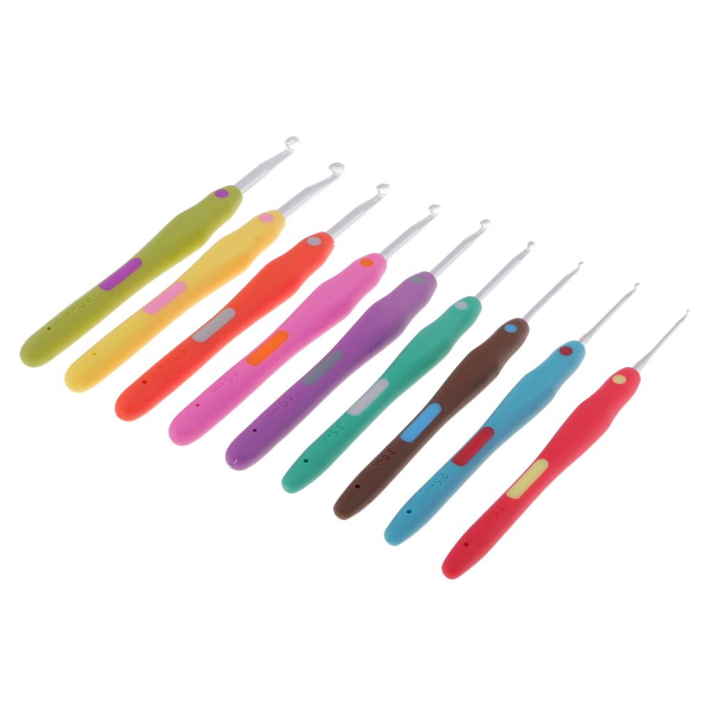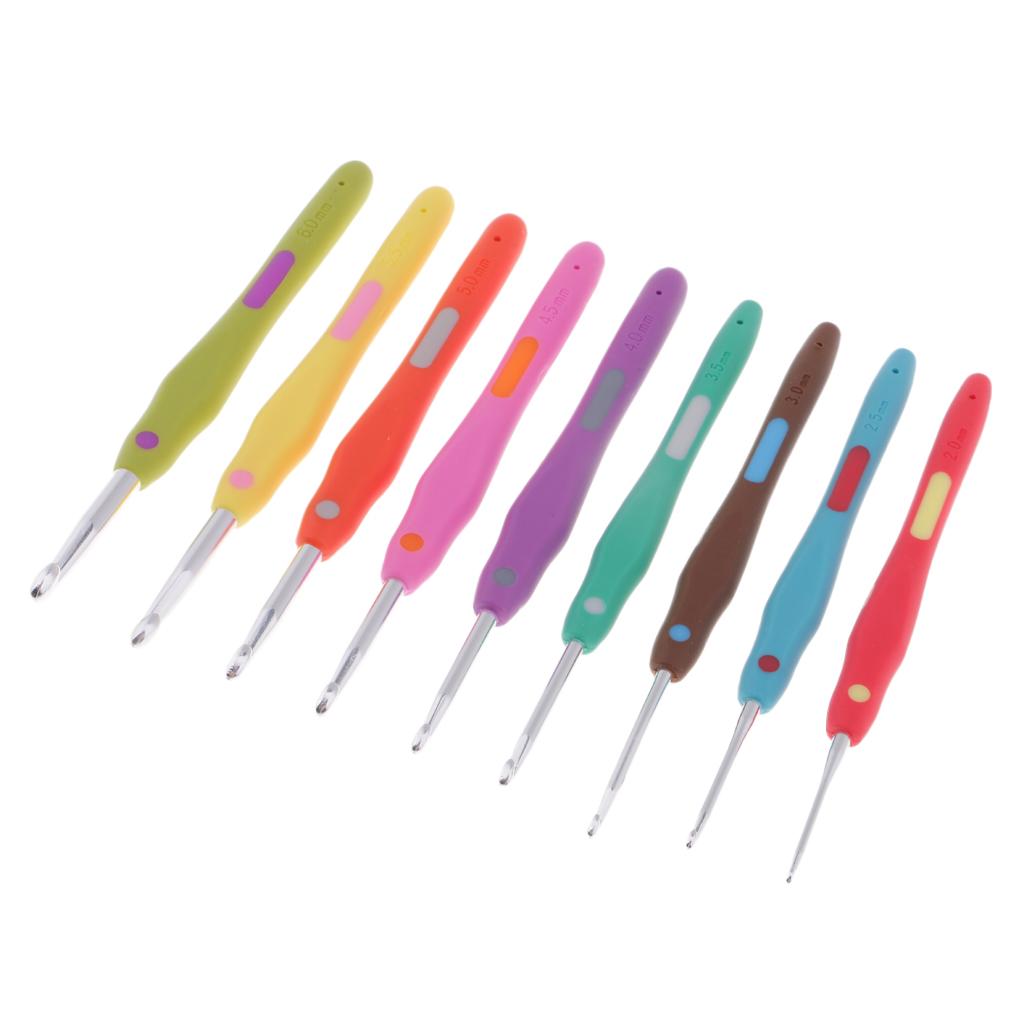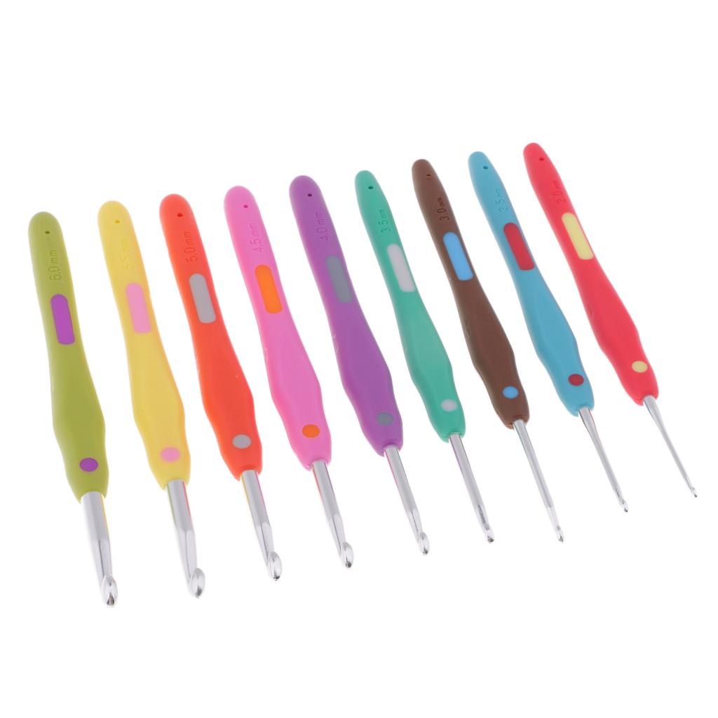 9 Pieces Plastic Handle Aluminum Crochet Hooks