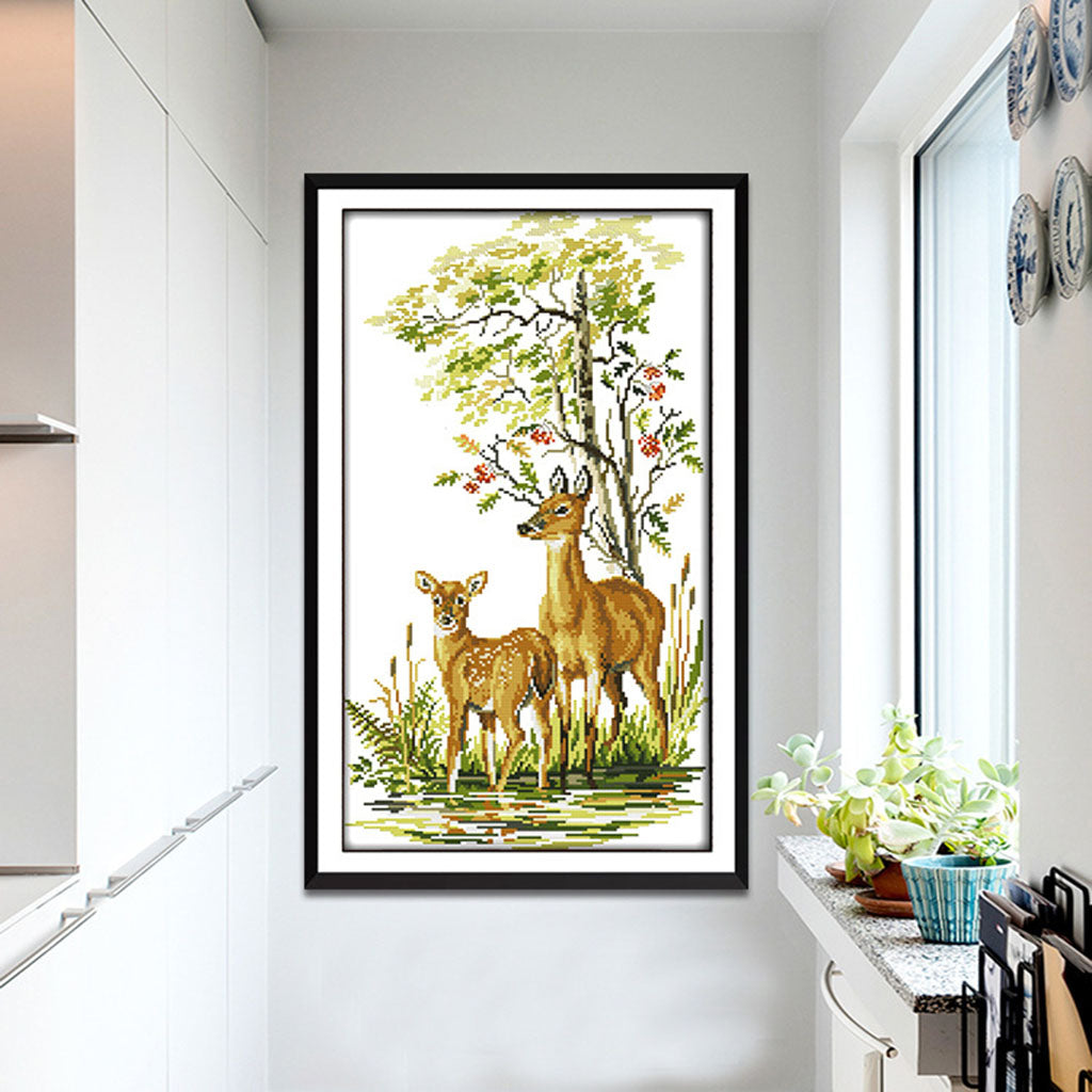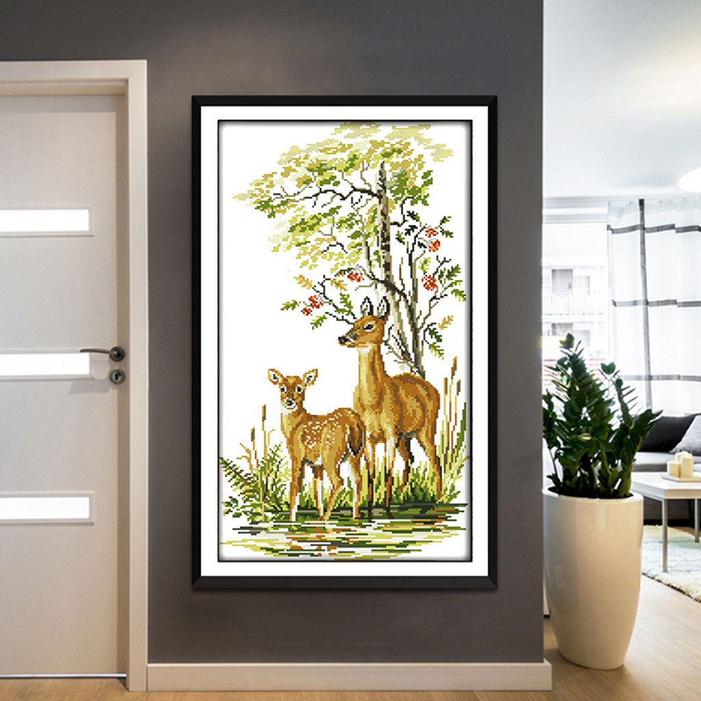 Animals Deers Stamped Cross Stitch Kits for Adults Embroidery 14CT Count