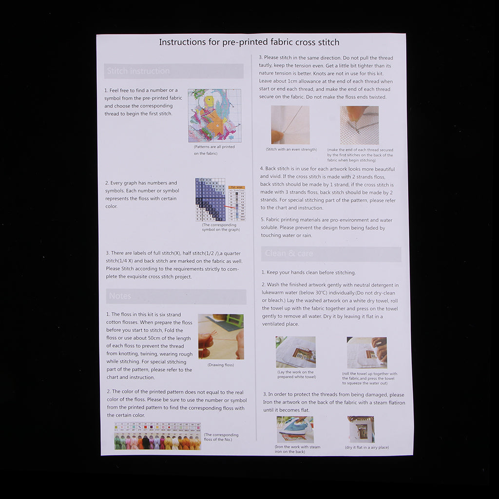 Pre-printed pattern and symbols chart, the symbol below corresponding to thread color (The chart is printed on the side of the fabric)