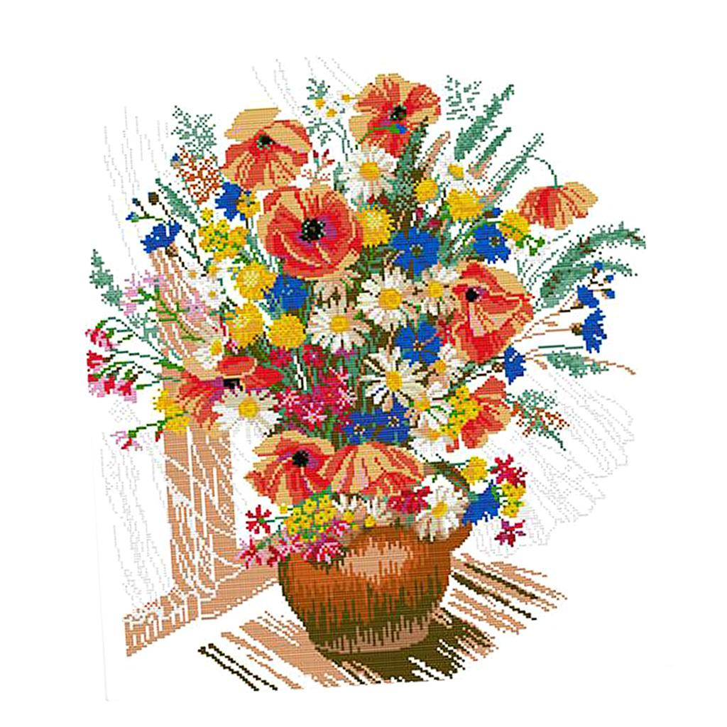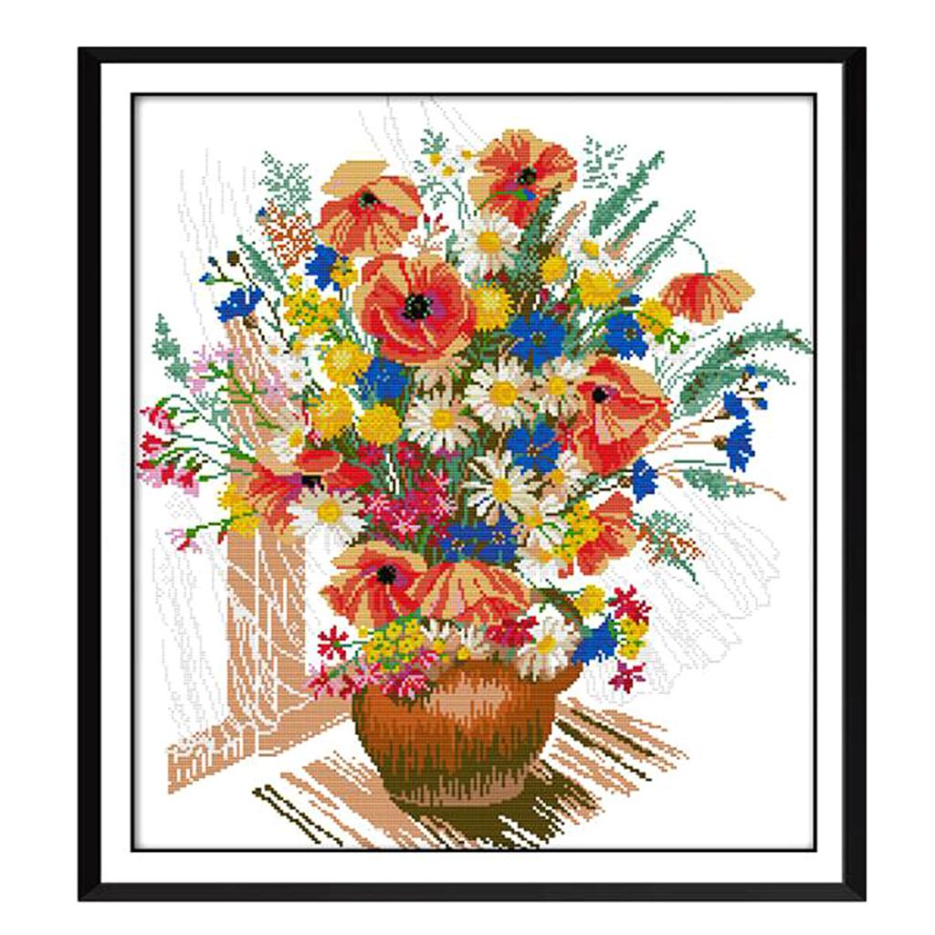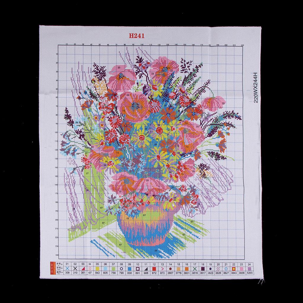 Colorful flower vase design stamped cross stitch kits