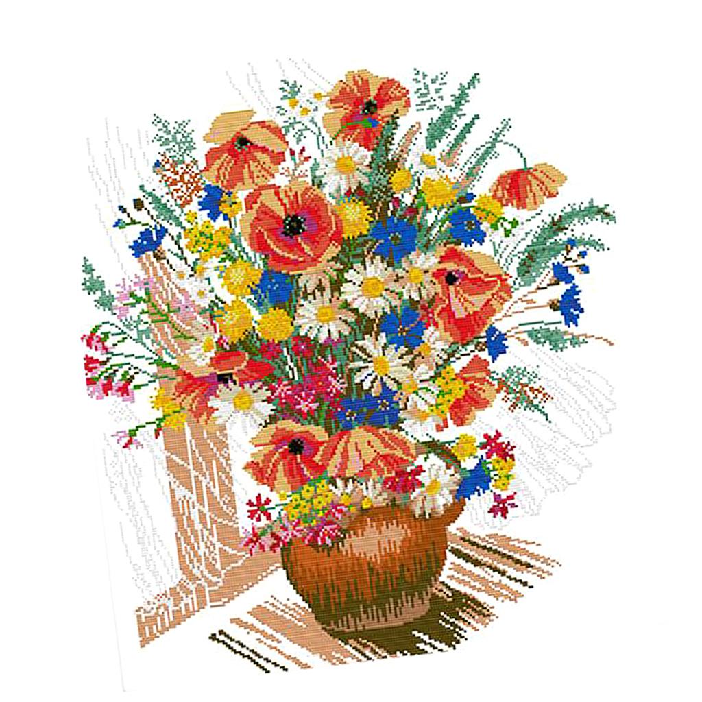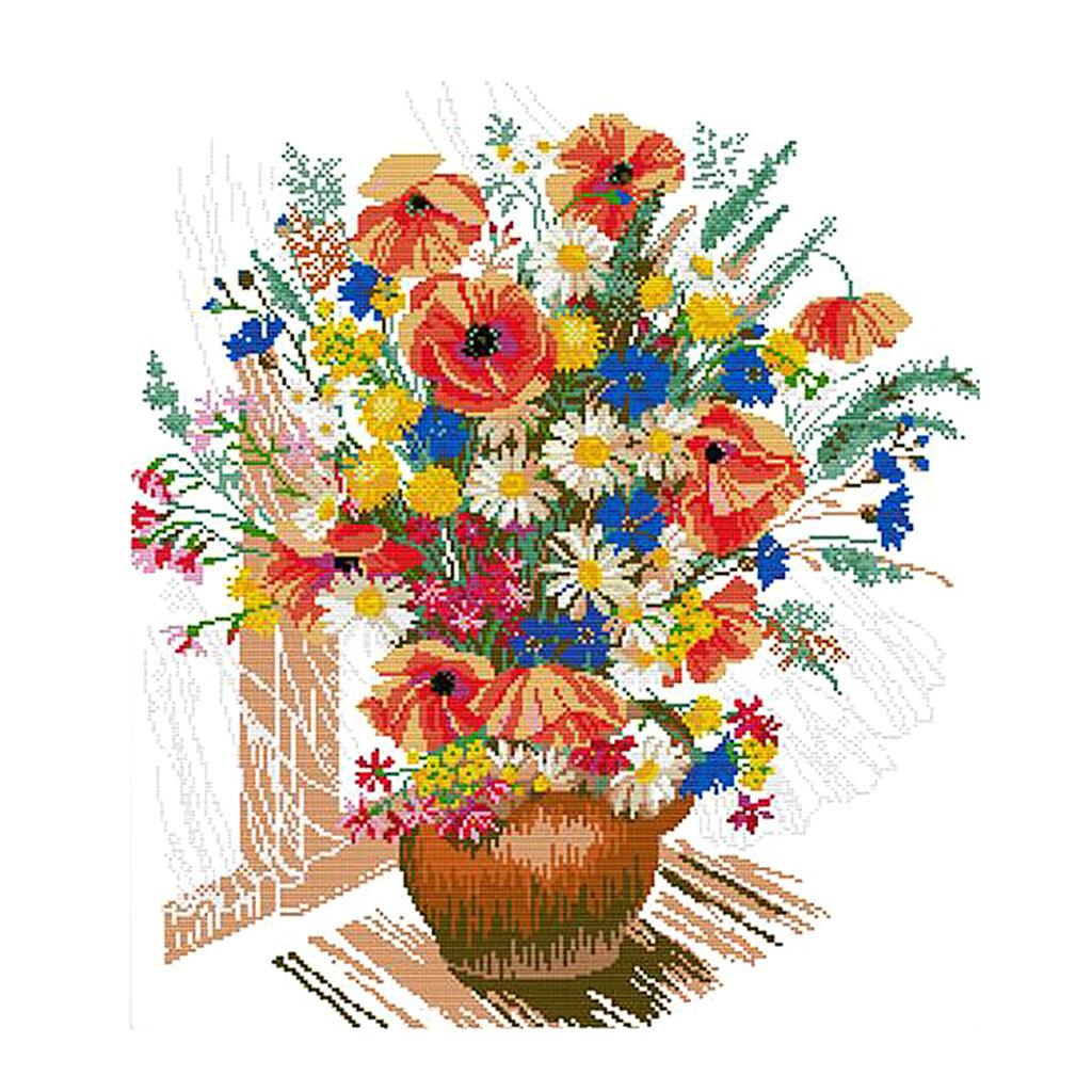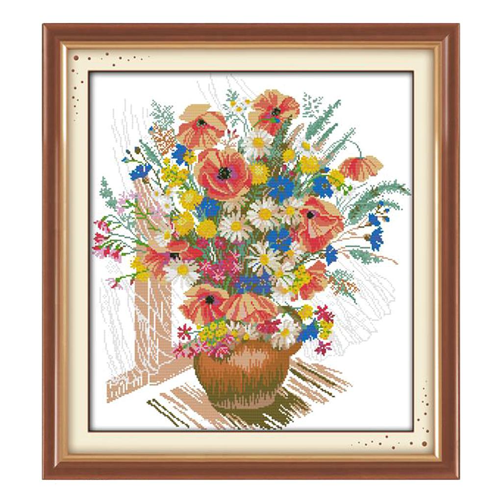 Colorful flower vase design stamped cross stitch kits