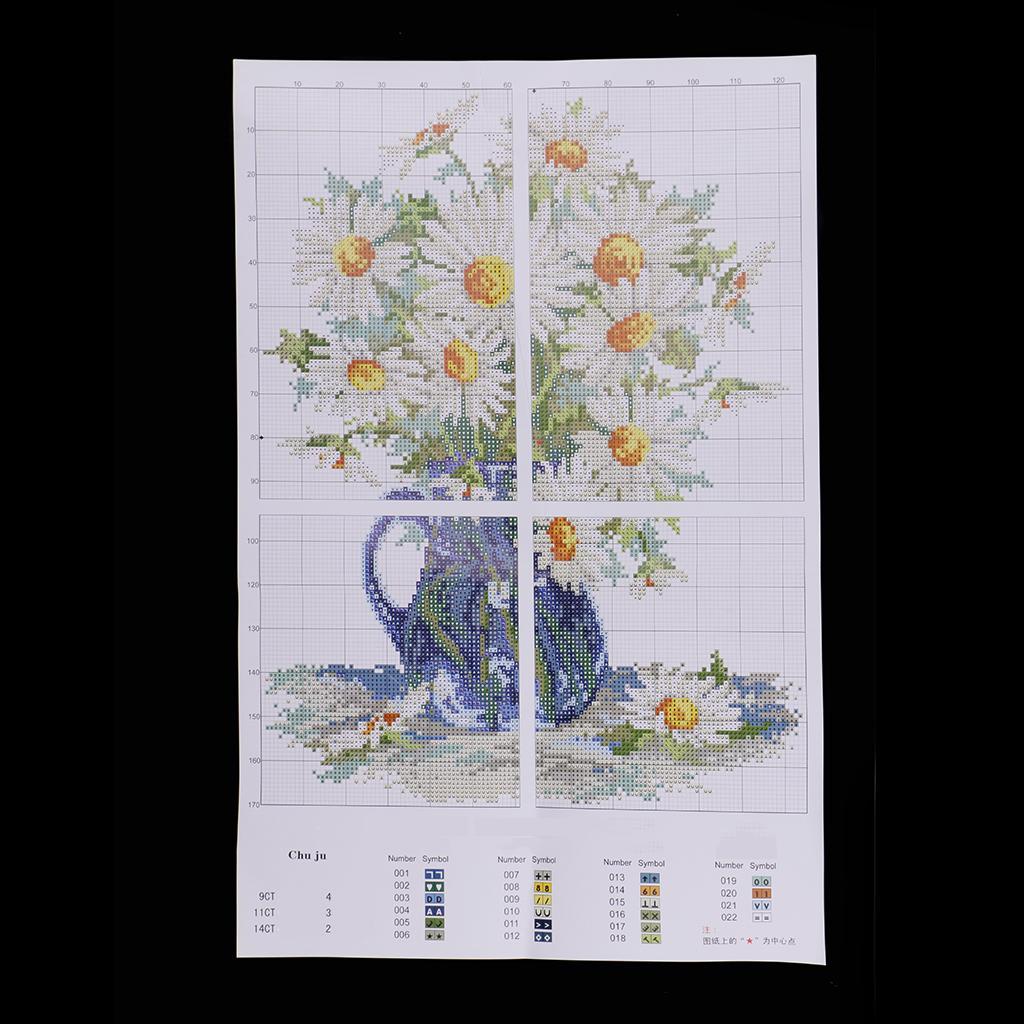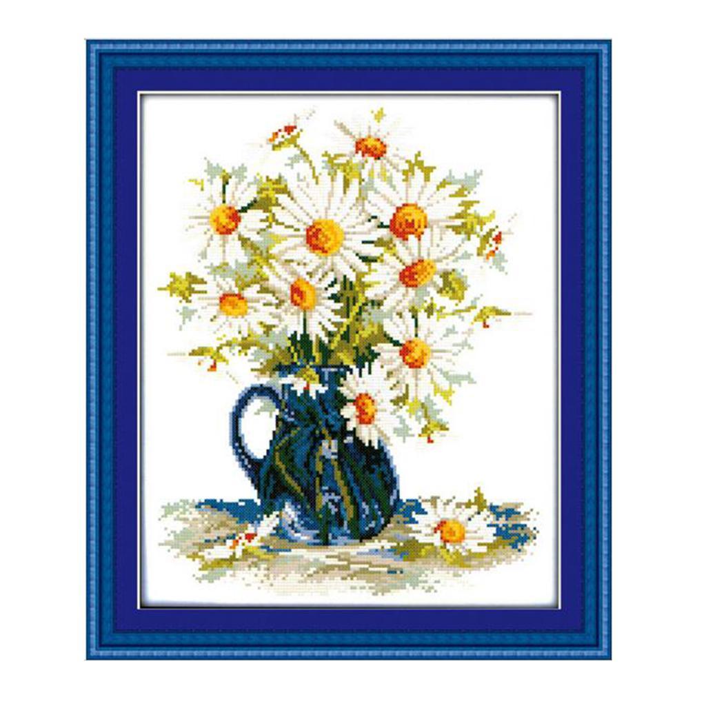 Daisy Flowers Stamped Cross Stitch Kits Pre-Printed Pattern Embroidery Kit for Children