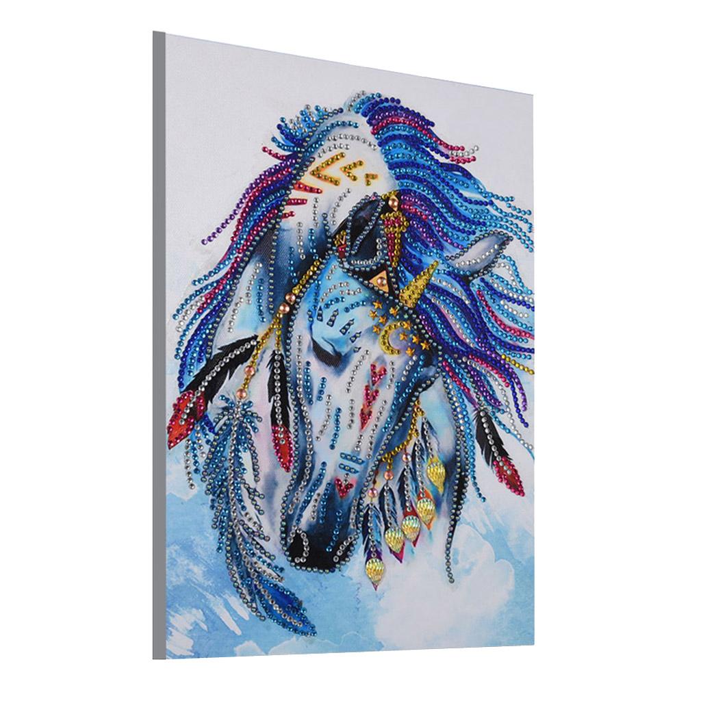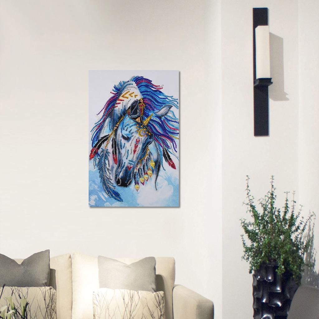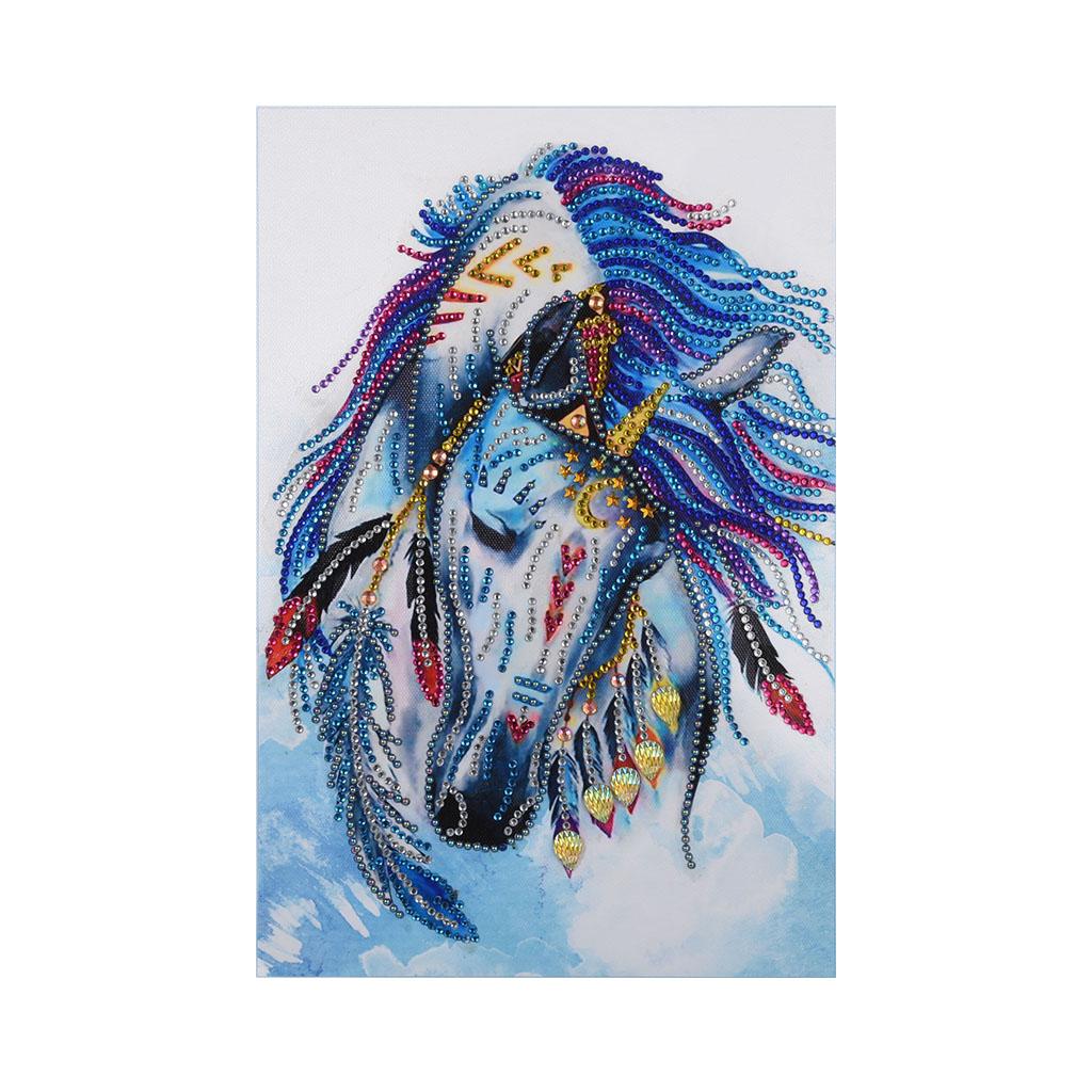 Easy to handle mosaic panting, unique real like blue horse head picture, fully crystal rhinestones covered