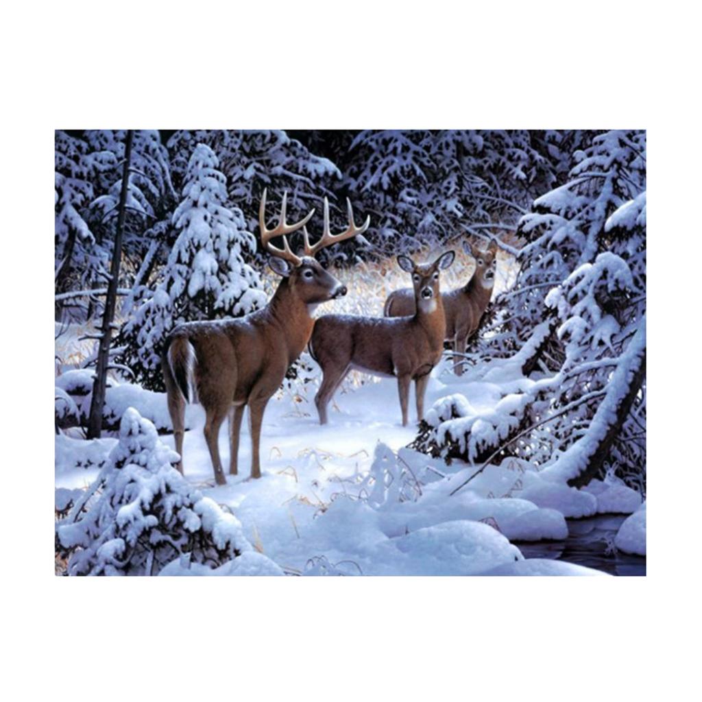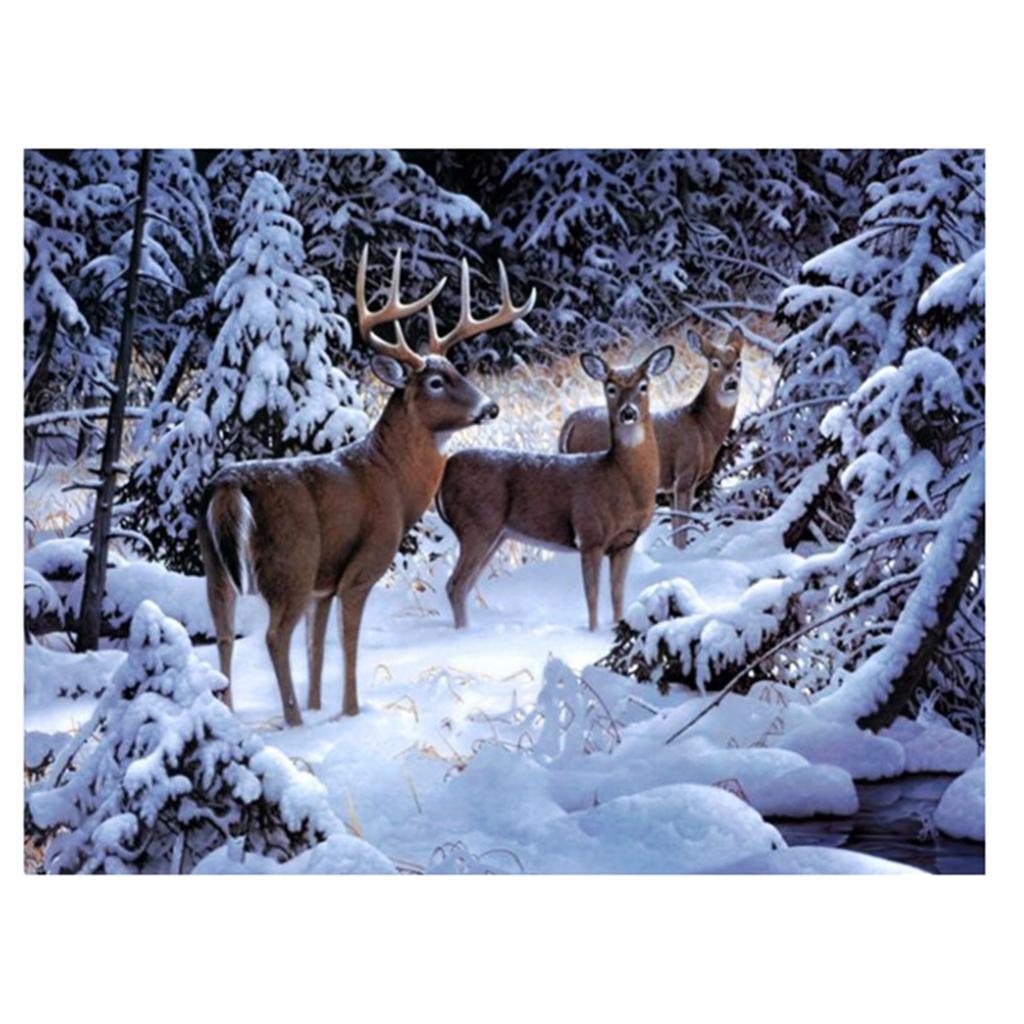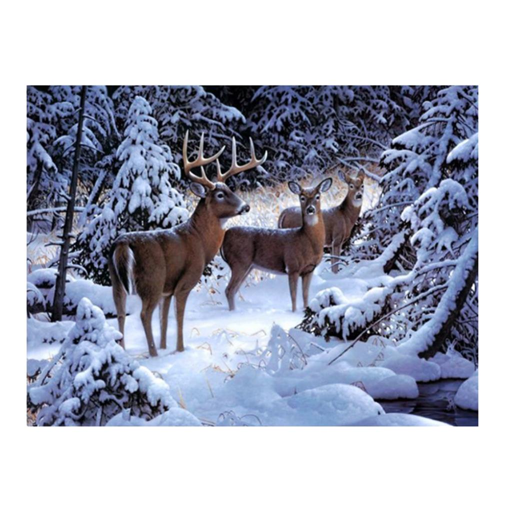DIY 5D Deer Snow Diamond Embroidery Painting Cross Stitch Kit for Home Decor 25*35cm